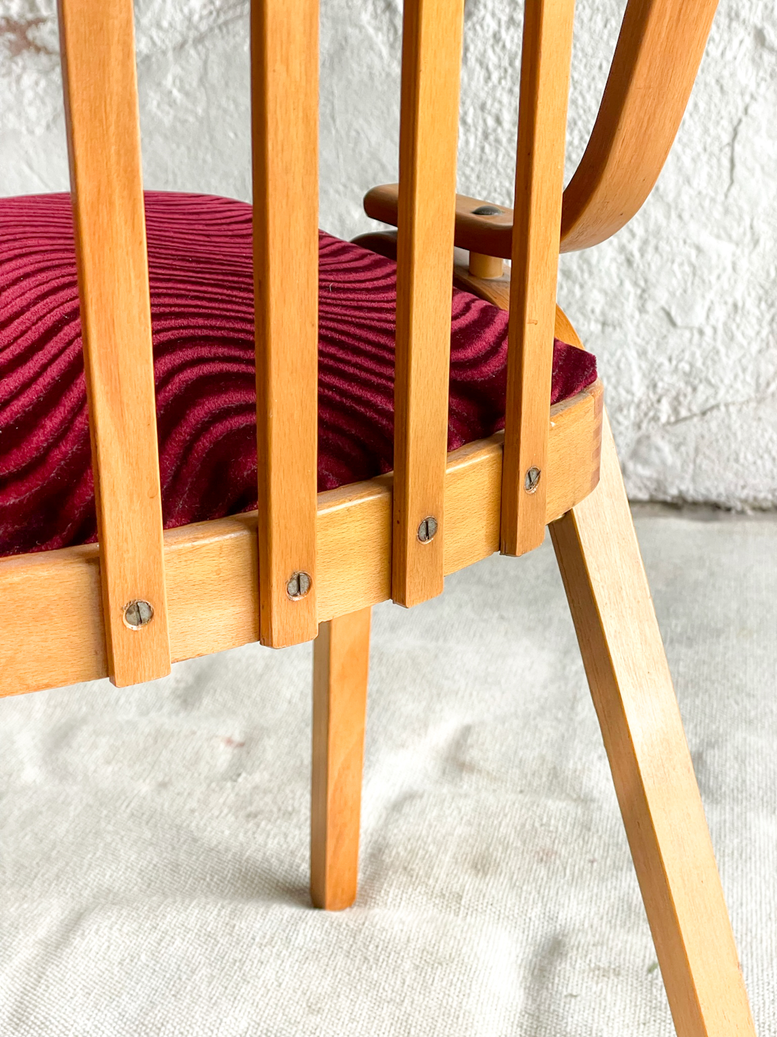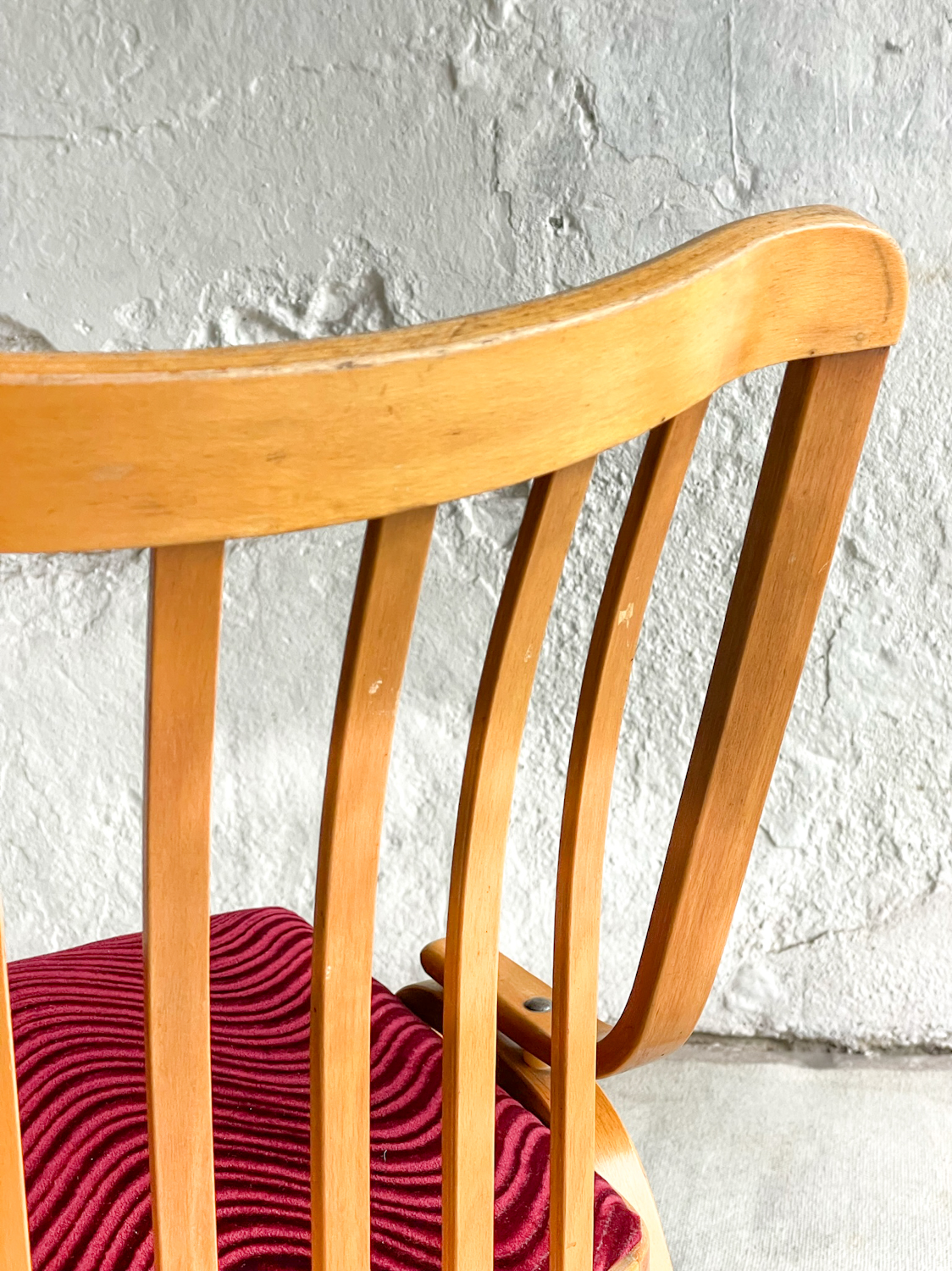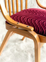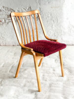 Jídelní židle od Ludvíka Voláka, který byl od roku 1959 hlavním inženýrem Dřevopodniku v Holešově. Uvedl na trh novou nábytkářskou technologii „dřevolaminát“, která ve výrobě sedacího nábytku reprezentovala ČSSR na mnoha výstavách v zahraničí a na velvyslanectvích.