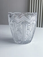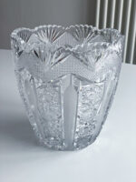 Velmi slavnostní broušená váza v kombinaci čistého a pískovaného brusu. Váza je široká a tak vhodná na větší pugét.