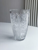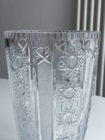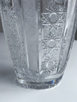 Velmi slavnosntí vysoká broušená váza. Brus je tvořen ve svislých pruzích a střídají se na něm květy a jemné kosočtverce.