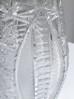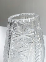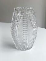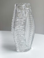 Vysoká bohatě broušená váza elipsového tvaru vhodná i na větší květiny. Chcete-li zachovat klasické vyznění broušené vázy, budou se v ní nejlépe vyjímat růže. Nás baví trochu tradičnost shodit, což můžete docílit přidáním větví nebo odvážnějíší mohou zakomponovat i zeleninu.