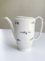 Velká čajová konvice z období Art deca zdobena typickým vzorem dané doby laděné do modré barvy.