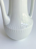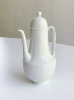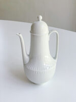Čajová konvice od německé porcelánky Hurschenreuther, jedné z nejstarších evropských porcelánek, která patří už přes dvě dekády do „rodiny“ Rosenthal. Konvice je celá bílá, ale je plasticky zdobena něžný vzorem jakoby sloupů s kuličkami.