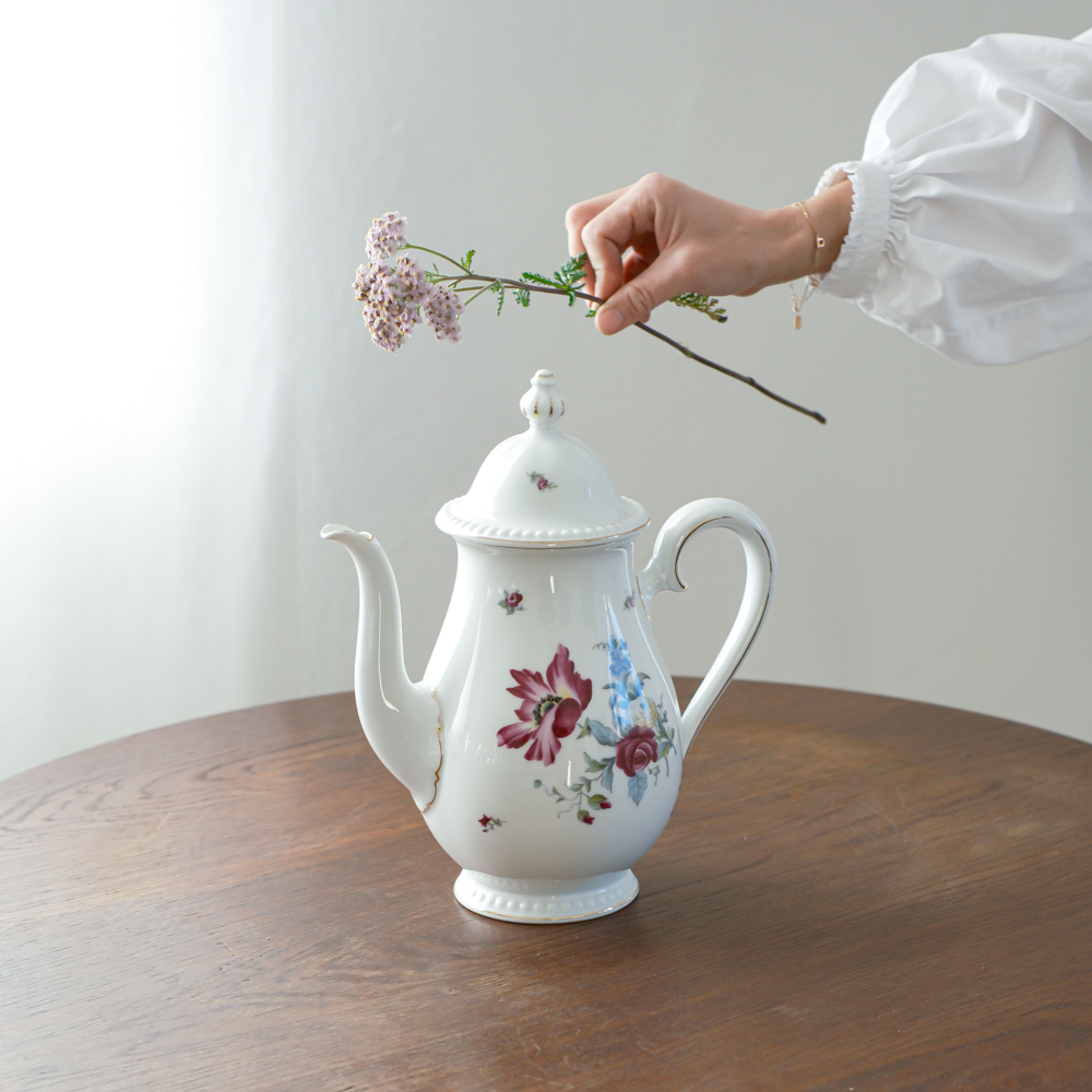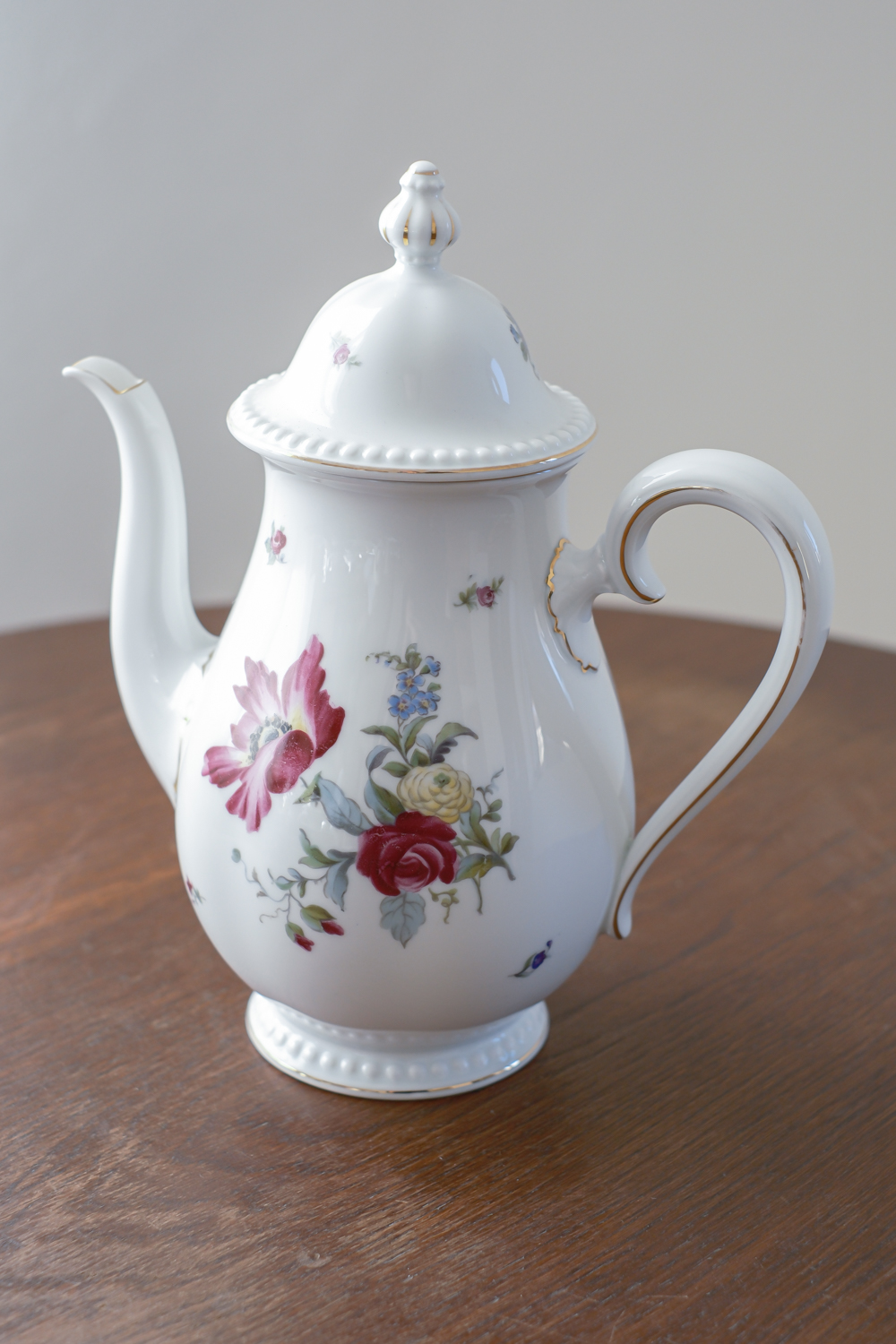 Velká čajová konvice od německé porcleánky Rosenthal s barevně výrazným květinovým vzorem.