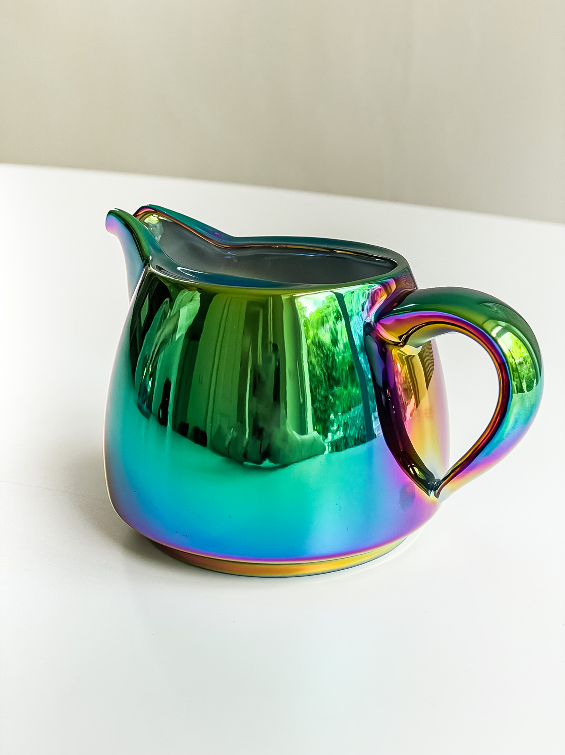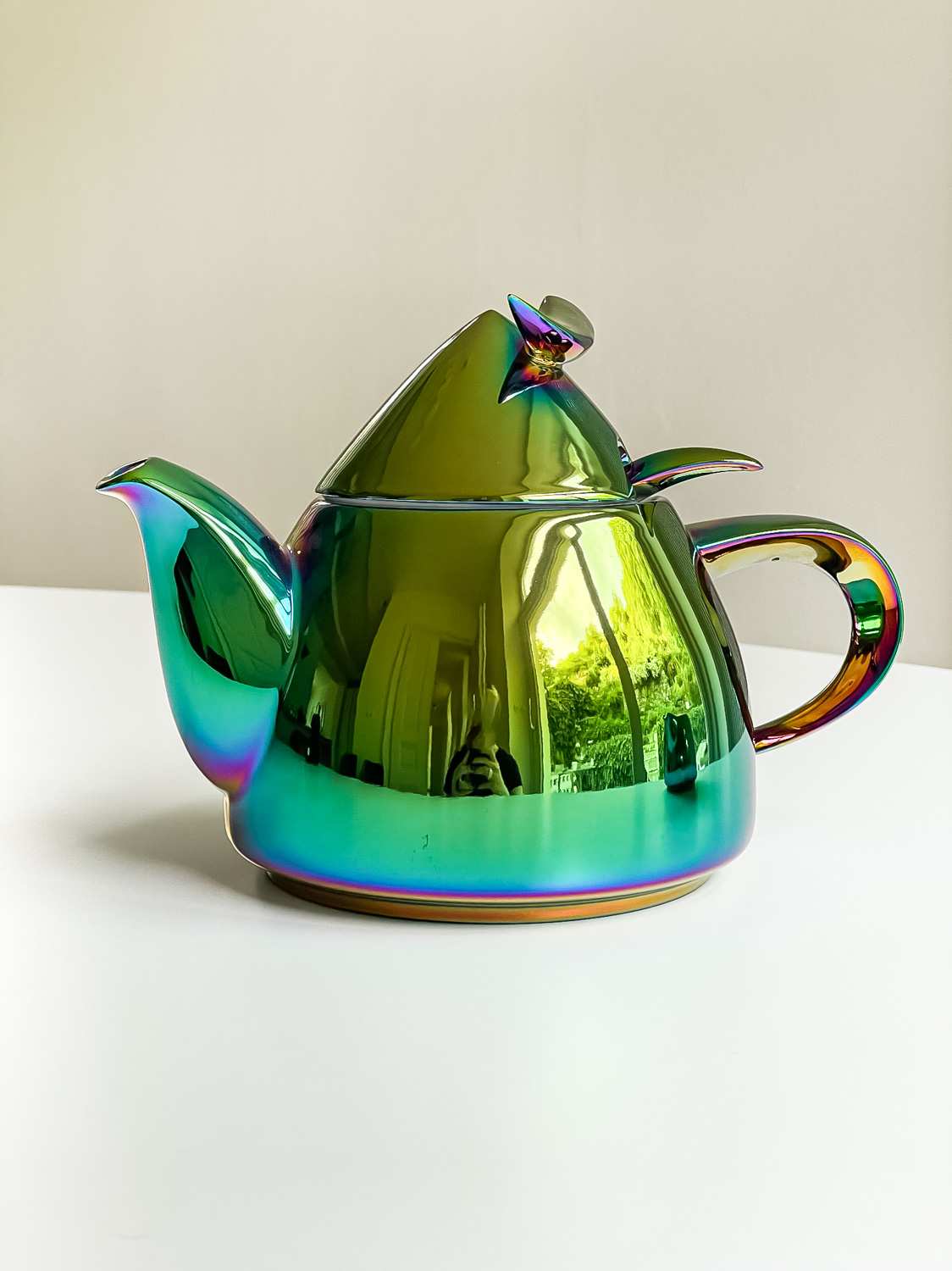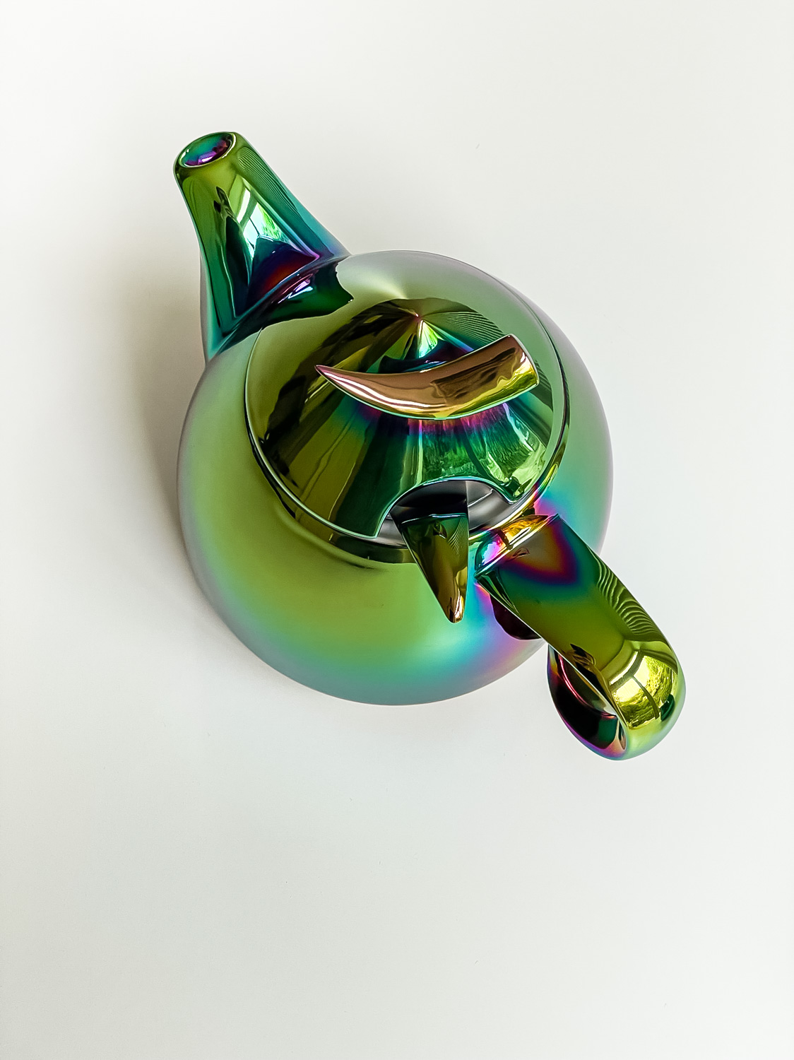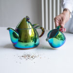 Konvice na čaj s vyjímatelným sítkem a mlékovka ve tvaru Kelt ve variantě metalické duhové. Jde o řadu, která se vyznačuje oblými tvary a inspirací v historii. Úchytka na konvici je ve tvaru zubu a dodává jí zajímavý moderní ráz. Stala se předmětem sběratelského zájmu neboť už se nevyrábí.
