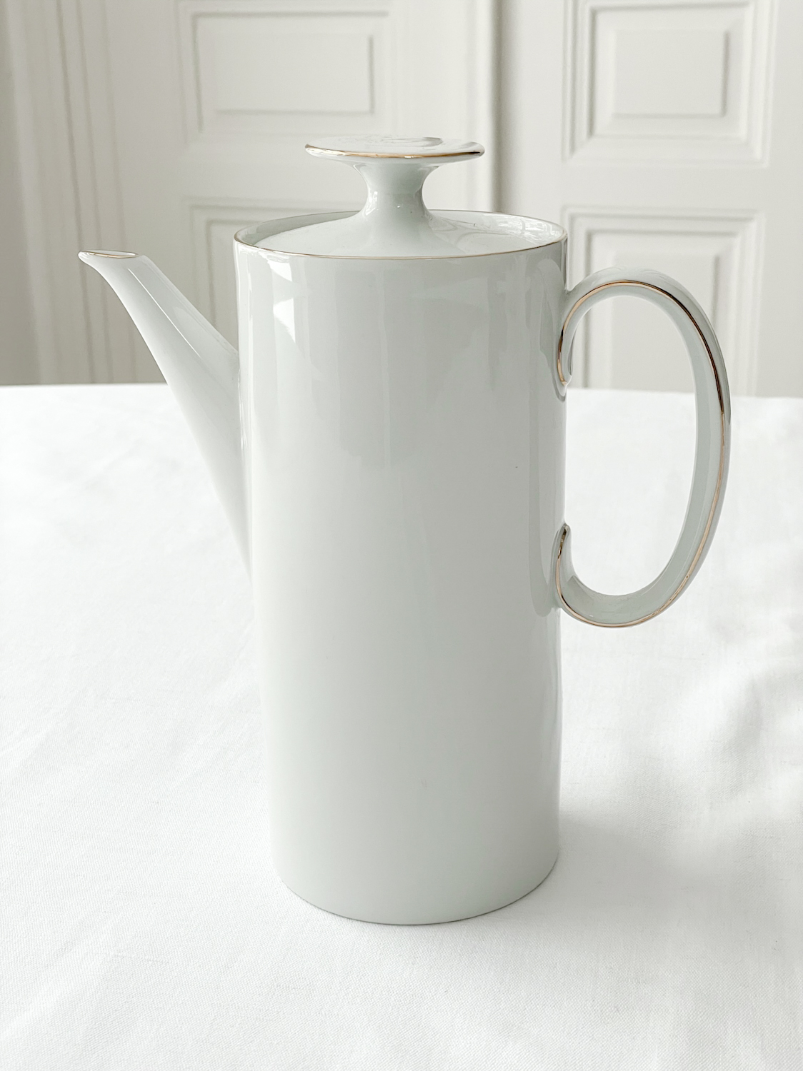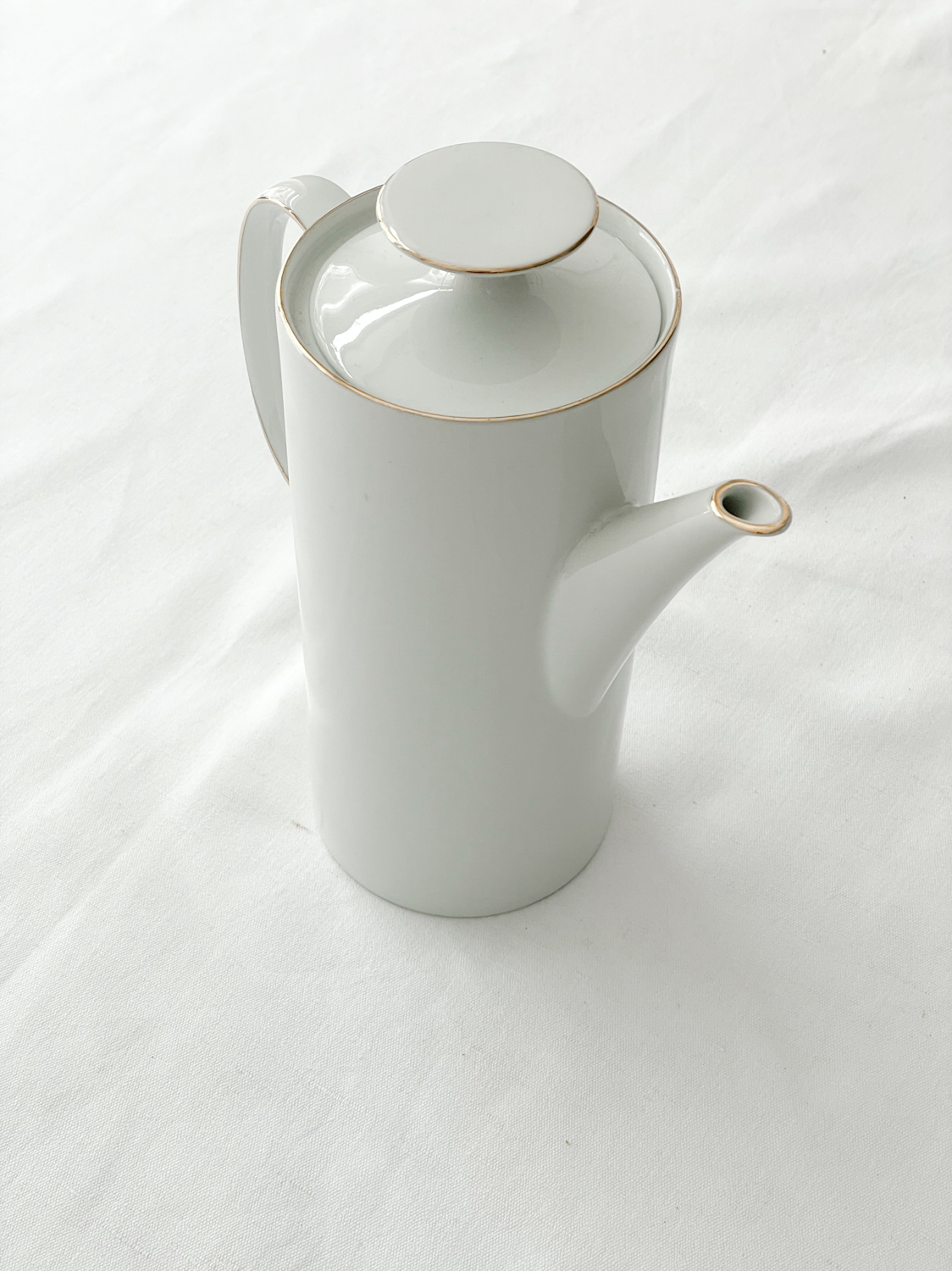 Čajová konvice od německé porcelánky Thomas. Tato značka vznikla v roce 1903 a spadá pod skupinu Rosenthal. Už od 50. let minulého století se Thomas zaměřuje především na jednoduchý stylový porcelán pro mladé. Jeho výrobky patří mezi nejprodávanější porcelánové řady na světě. Za svůj design již navíc získal více jak 50 mezinárodně uznávaných ocenění.