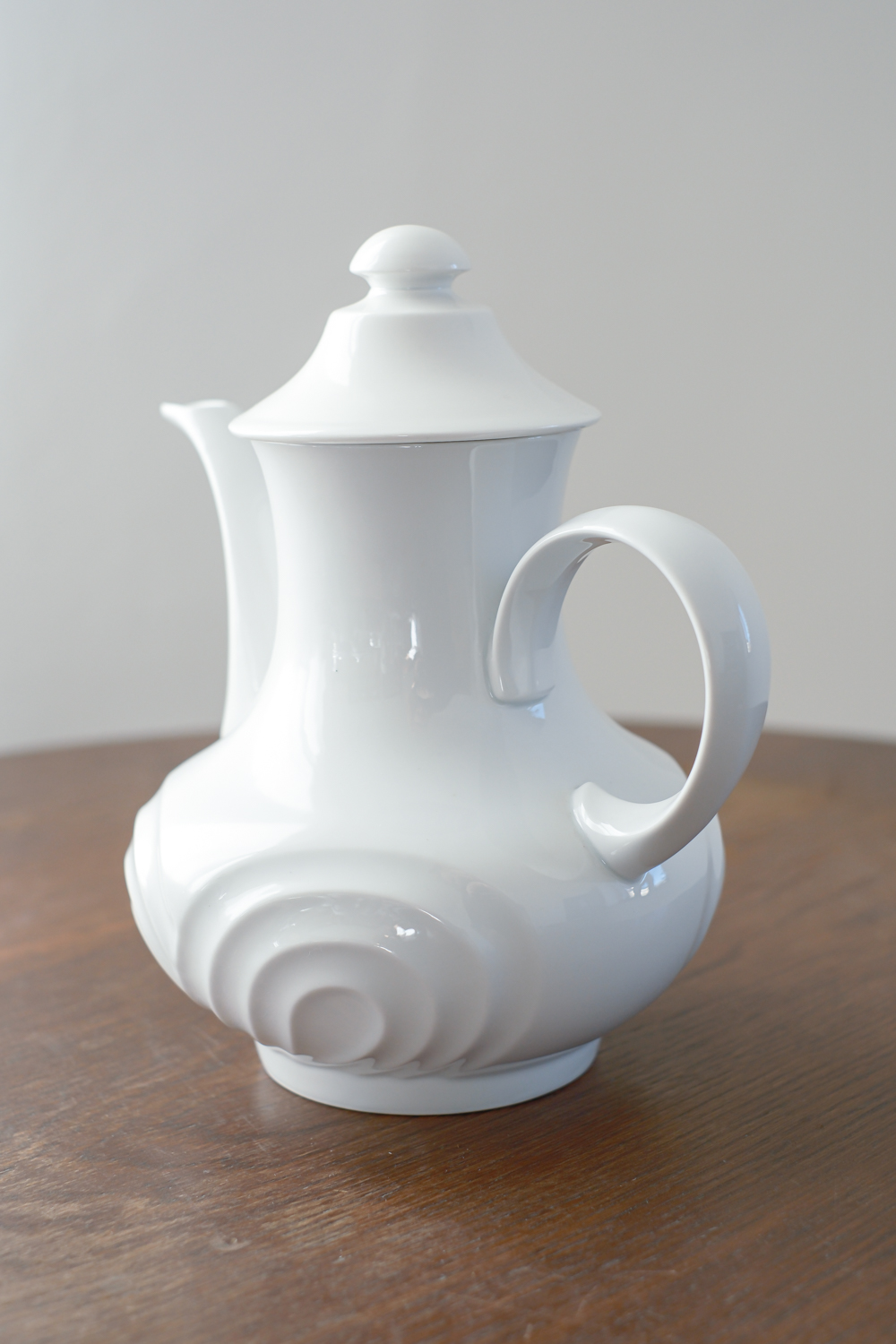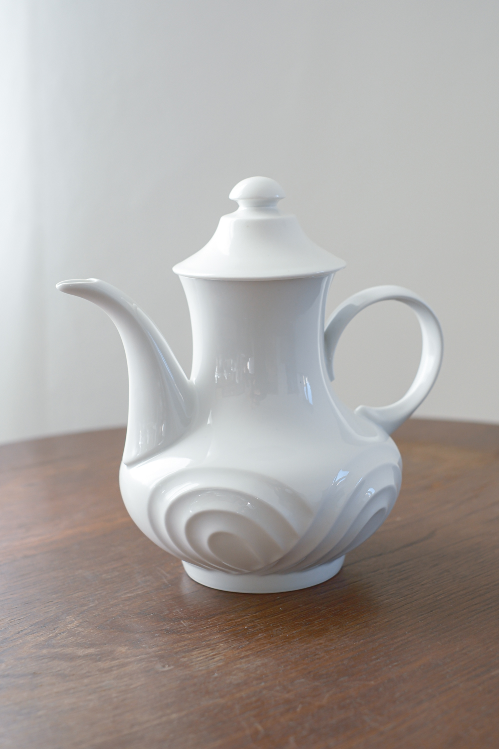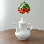 Buclatá čajová konvice s plastickým vzorem působí velmi moderním dojemme, přestože je z minulého sotletí. Lze ji kombinovat s modenrím i straým porcelánem.