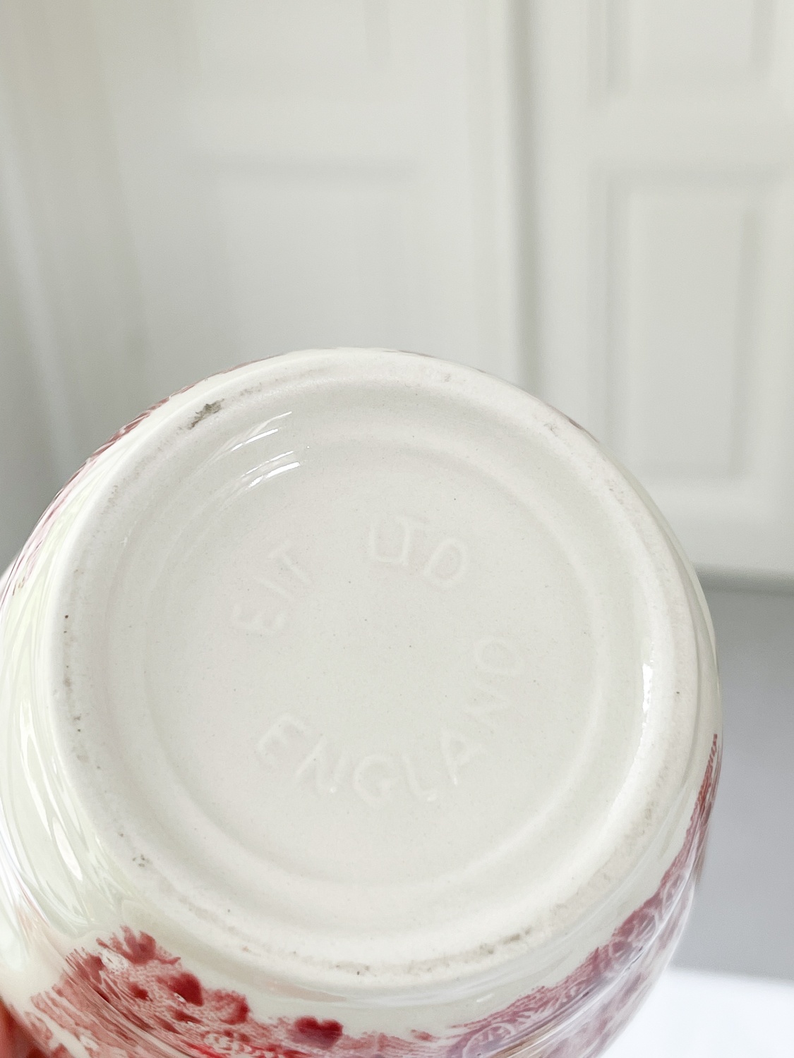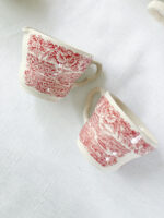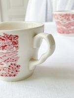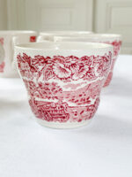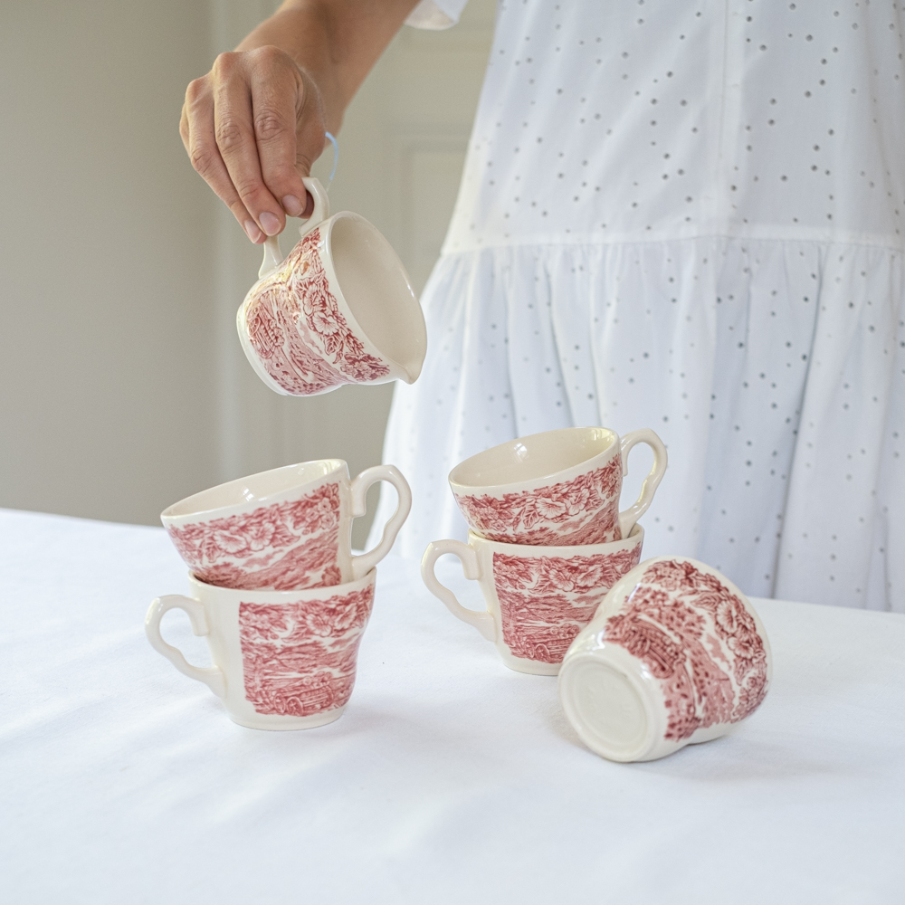 Čajová sada z řady anglického porcelánu je z tlustého střepu v barvě slonové kosti a je růžově dekorována výjevem venkova. Dekor na hrnečkách je mírně jakoby rozmazán, nemá silné kontury jako na cukřence a mlékovce.