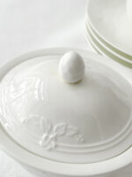 Čajová sada z krásného tenkého střepu v lomené bílé barvě zdobena plastickým vzorem pomněnek. Díky kombinaci květů a linky působí moderně romanticky a především velmi něžně. Sada obsahuje: 4 šálky s podšálky, cukřenku, mlékovku.