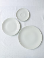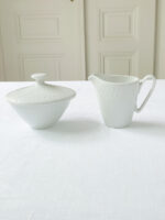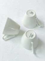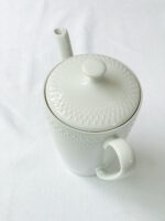Souprava je vyrobena z tenkého střepu s decentním bílým plastickým vzorem. Je velmi minimalistická a nadčasová, tedy vhodná do moderního i vintage interiéru.