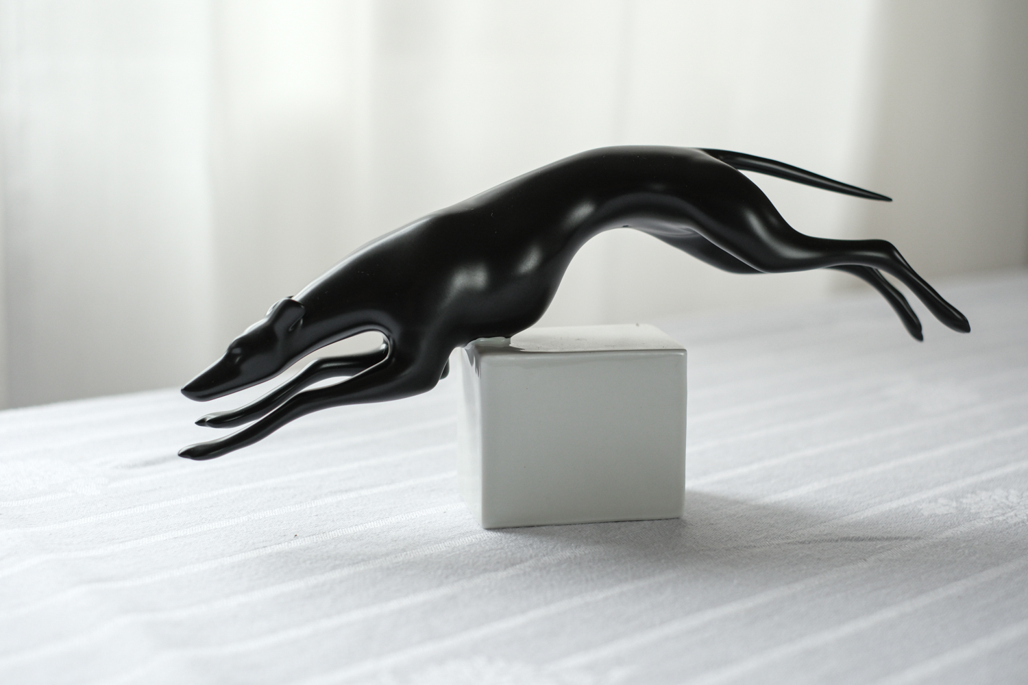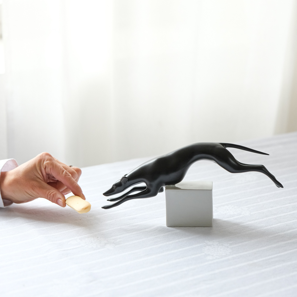 Sošku chrta navrhl výtvarník Jiří Černoch v šedesátých letech minulého století  pro Royal Dux. Pro jeho tvorbu bylo typické silné stylizování figurek, někdy bylo až těžké poznat, o jaké zvíře se jedná. V tomto případě je ale znázornění chrta velmi věrohodné a plné anatomických detailů. Šlo především o zachycení pohybu.