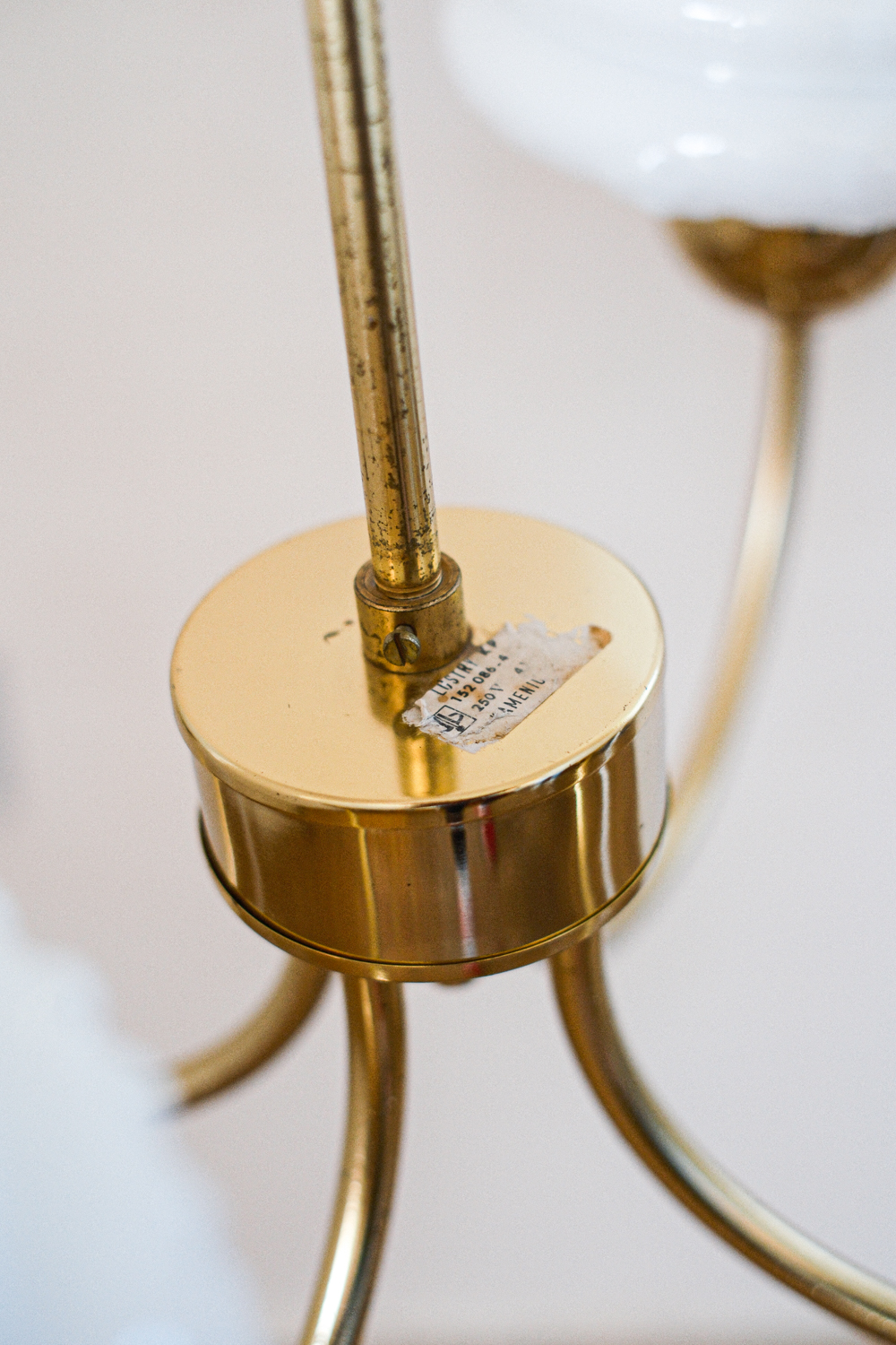 Stav: dobrý, ale zlatá již na některých ramenech oprýskaná; elektroinstalace původní a funkční
