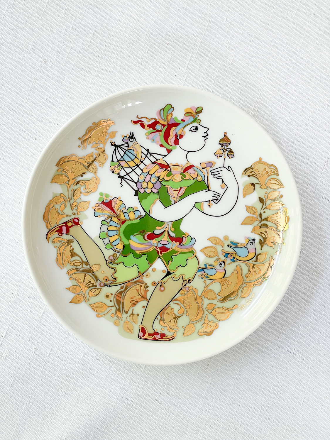 Dekorativní talíř německé porcelánky Rosenthal z řady studio line s dekorem od dánského malíře a designéra Bjørn Wiinblada, který byl v New Yorku v roce 1985 jmenován Mužem roku a v roce 1995 získal kulturní cenu Americko-skandinávské nadace. Wiinblad byl významným návrhářem porcelánky Rosenthal.