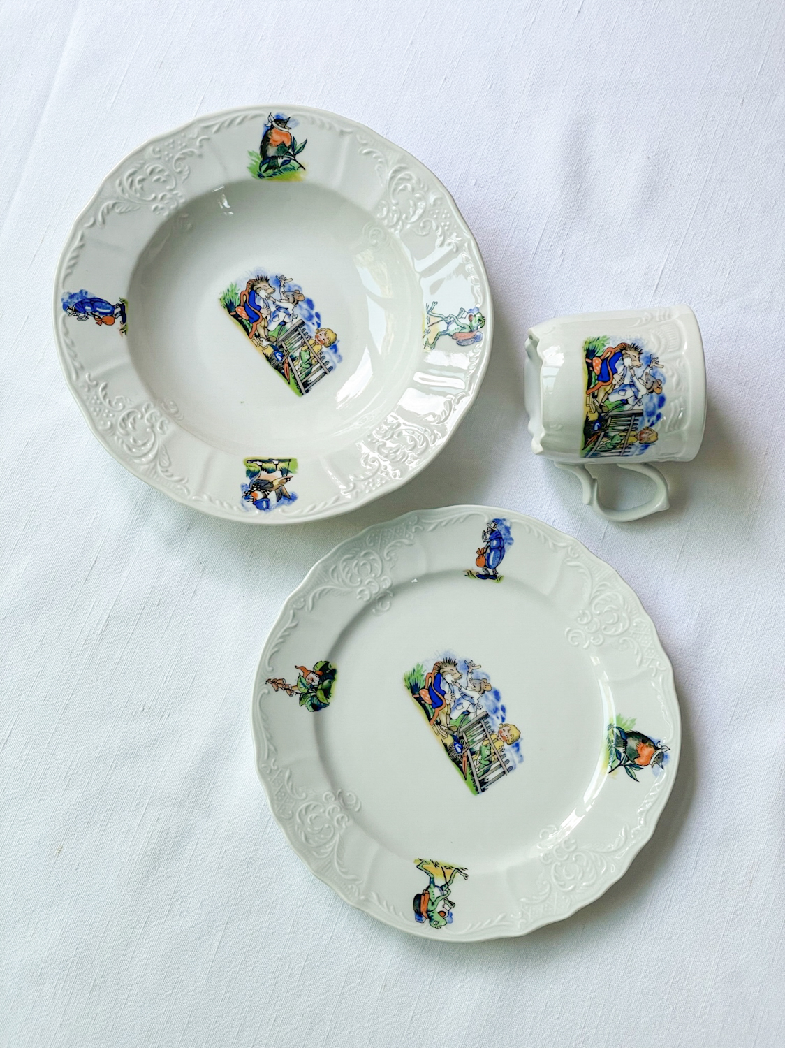 Jídelní dětská sada s hravým motivem doktor Bolíto, který je oblíben nejen u dětí, ale i u rodičů, u kterých vyvolává vzpomínky. Poutavá ilustrace vám snadno poskytne téma k vyprávění u stolování. Navíc děti budou rády dojídat, protože se těší na obrázky na dně talíře a to i když už je znají.