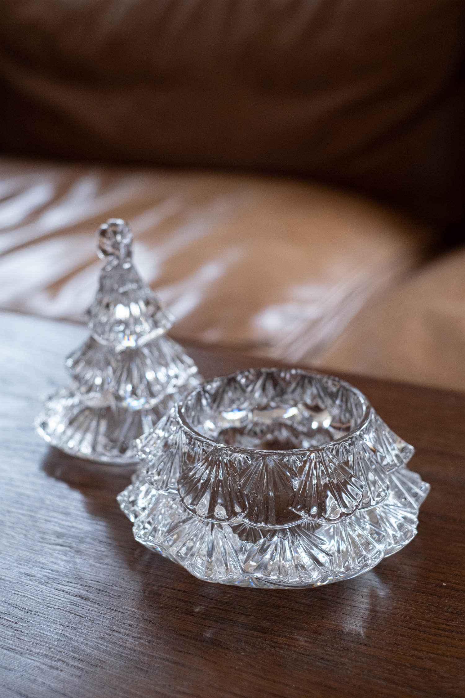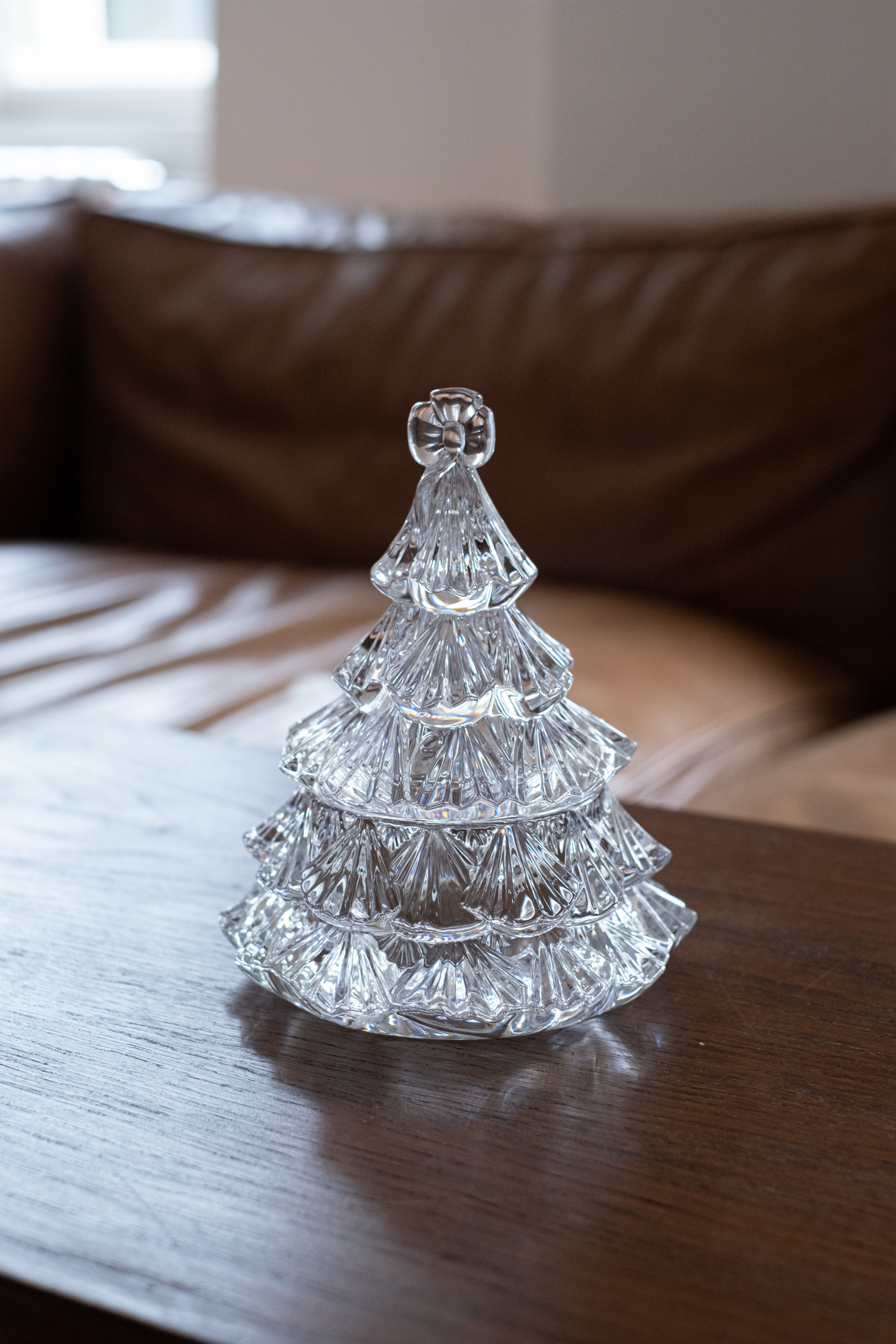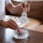 Dóza na stromeček z masivního litého skla bude hezkou vánoční ozdobou sama o sobě, ale poslouží i jako nádoba na cukrovinky či jiné drobnosti.