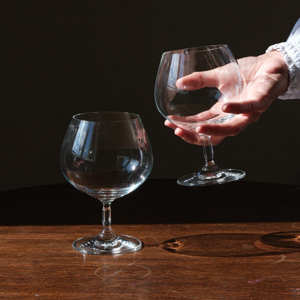 Dvojice sklenic Rosenthal v elegantním tvaru pro brandy či koňak. Typické pro značku je dokonalé vyvážení tvaru, kvality skla a lehkosti provedení. Rosenthal patří k ikonám německého designu, který spojuje tradici porcelánu a skla s moderním citem pro detail. Každý kousek odráží precizní zpracování a smysl pro estetiku, jíž je značka proslulá již od roku 1879.