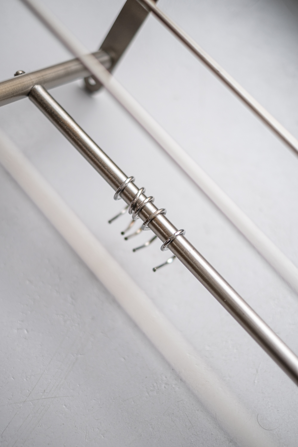 Funkcionalistický nástěnný chromový trubkový věšák. Tolik přídavných jmen pro jeden předmět. Vystihují ale vše, snad jen chybí dodat „krásný“.