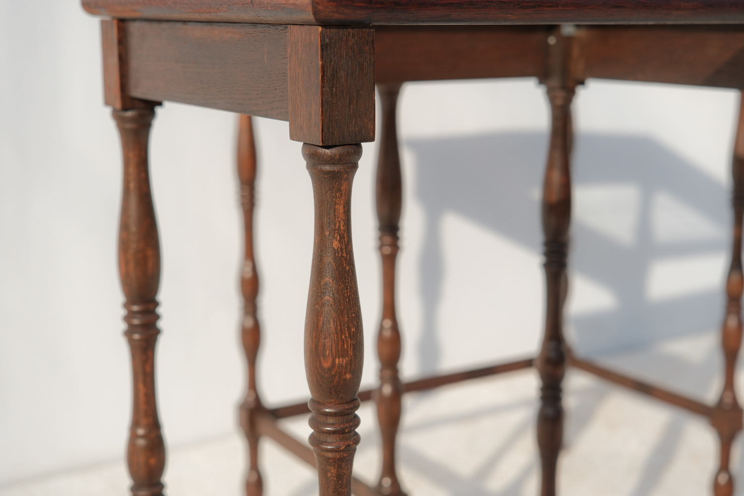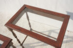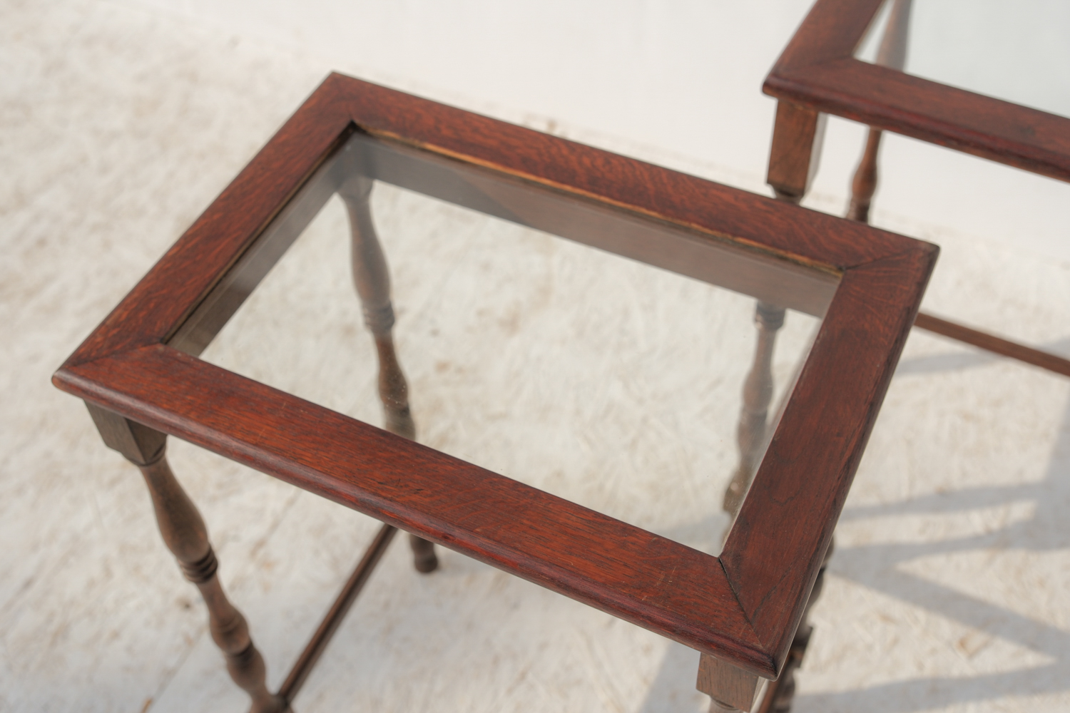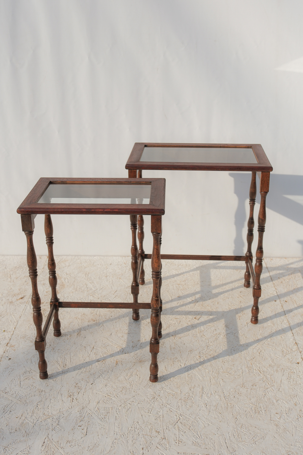 Dvojice subtilních stolků s jemně romantickým výrazem, které stojí na soustružených nohách s lehce odlišným tvarováním. Právě tahle drobná nejednotnost jim dává přirozený charakter – nepůsobí jako striktní set, ale spíš jako dva blízké kusy, které se časem potkaly.