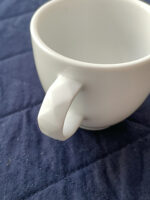 Tlustostenný hrneček na espresso s kubistickým uchem.
