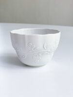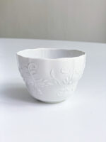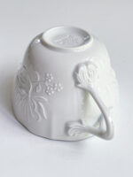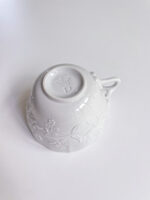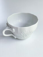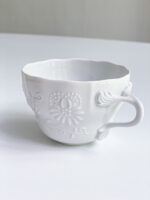 Bílý hrnek s cibulákovým vzorem, který je pouze v plastickém provedení, hrneček je bez typické modré glazury.
