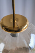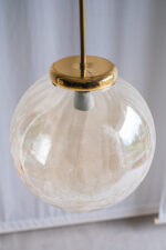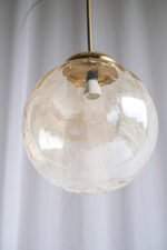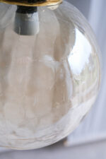 Skleněná koule jantarové barvy se zaltým detailem se hodí i do moderního interiéru, díky své barvě prostor zateplý a zůtulní.