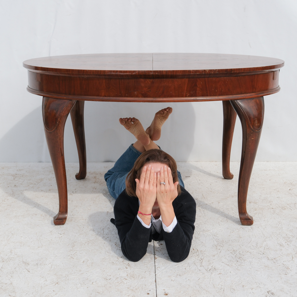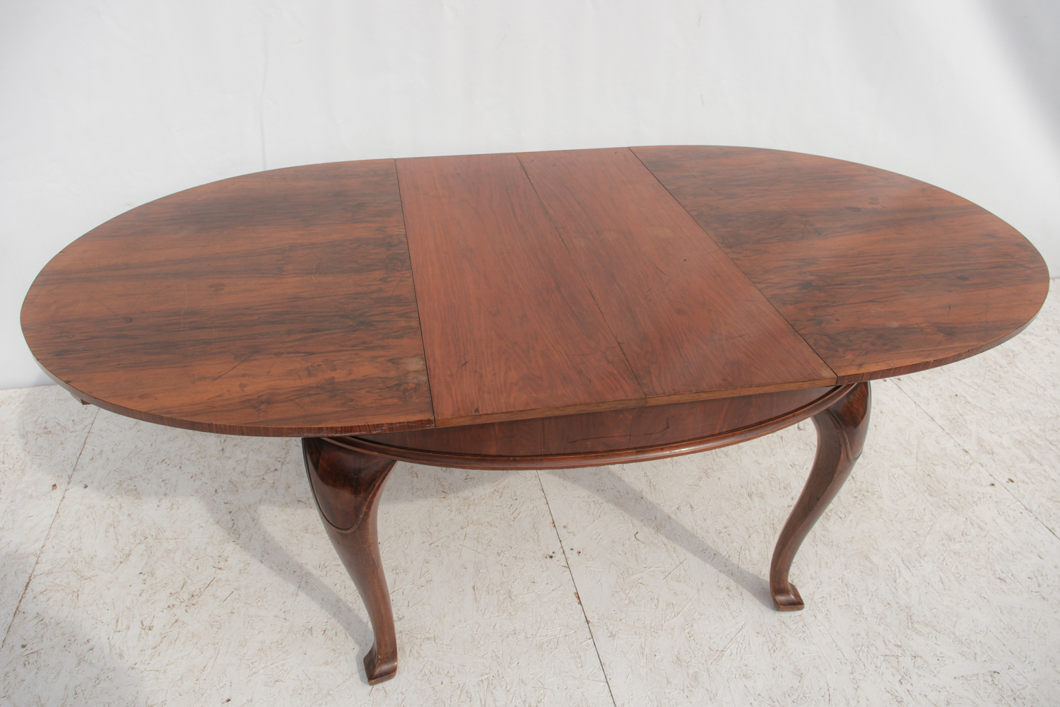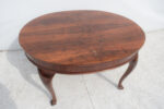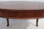 Oválná deska s přirozenou kresbou dřeva je rozkládací, po roztažení se do středu vkládá přídavná část, která je prakticky uložená přímo v konstrukci stolu. Charakter stolu určují především tvarované, lehce prohnuté nohy a jemně profilovaná hrana desky. Tyto detaily působí nenápadně, ale dodávají stolu eleganci a vyvážený, přirozený výraz. Tvar odpovídá období 30.–40. let, kdy se v nábytku stále objevuje dekorativnost art deca, ale zároveň se už prosazuje jednodušší, funkčnější přístup.