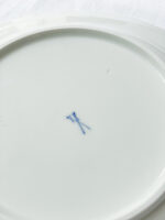 Jídelní sada Míšeň značená skřízenými meči. Míšňský porcelán je první evropský porcelán jehož vznik sahá do roku 1708. Tento podnik patřil k nejslavnějším manufakturám svého druhu v Evropě a funguje dodnes.Všechny produkty jsou svým způsobem unikáty, poněvadž jsou ručně vyráběné i dekorované. Míšeňský porcelán je označován logem dvou zkřížených mečů. Tato značka, zavedená v roce 1720, se dekretem stala od roku 1731 značkou oficiální; různé variace stylu mečů dovolují míšeňské výrobky dobře datovat. Dle značení pochází tento jídelní talíř z let 1860-1924.