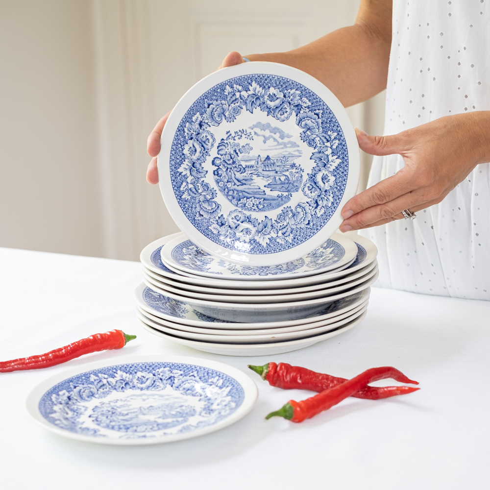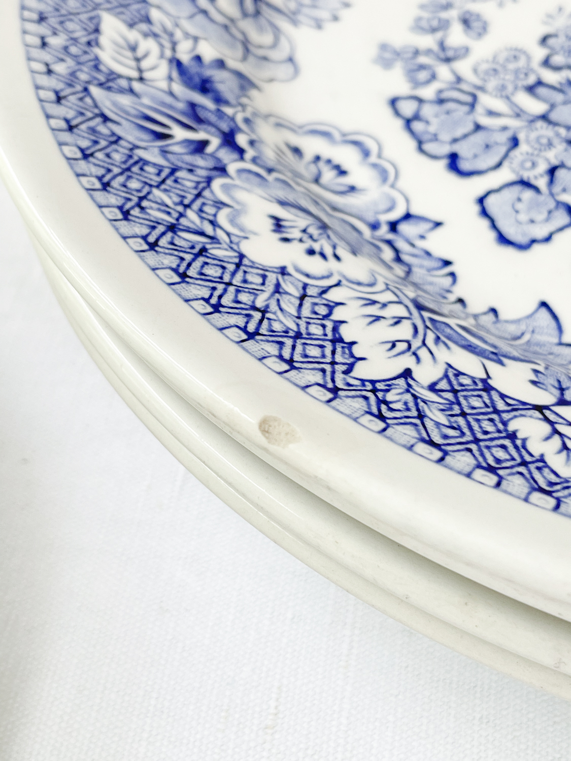 Stav: dobrý s mírnými nedostatky, na některých talířích malé oťuky ze spodní strany lemu. Jeden jídelní neparný oťuk na vrchní straně lemu.