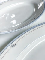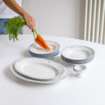 Sada obsahuje: 4 jídelní talíře, 4 mělké talíře, dvě oválné mísy, slánku