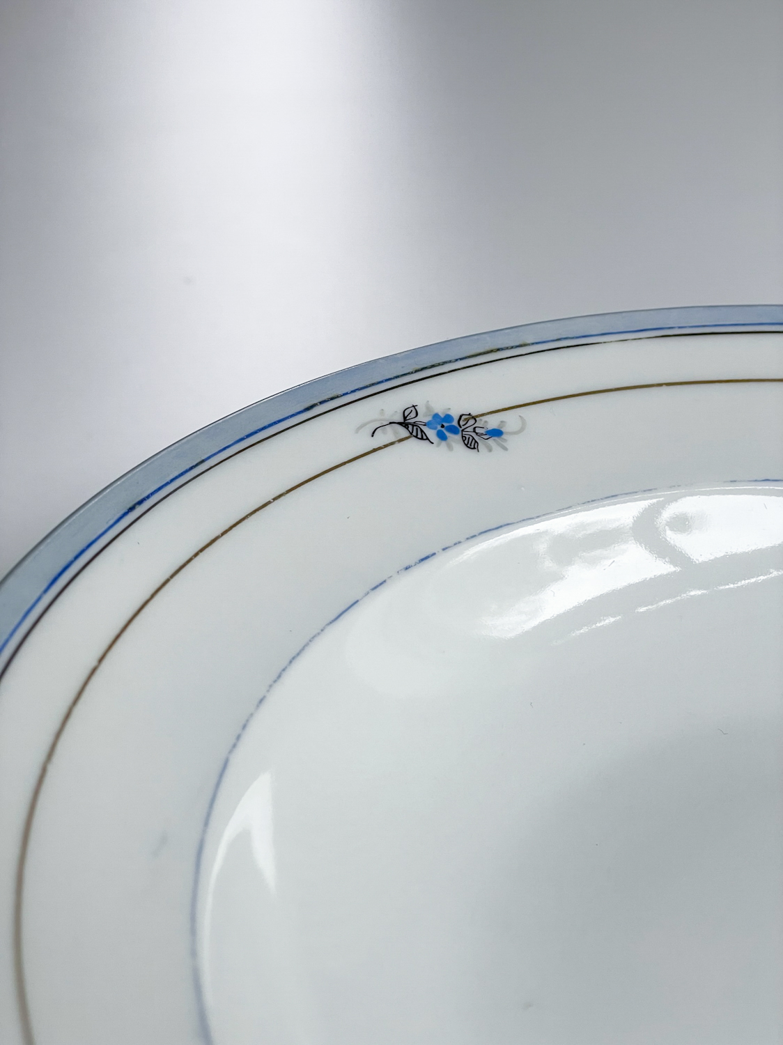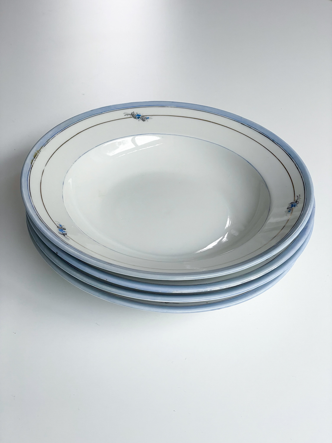 Jídelní sada pro 4 osoby od české porcelánky Haas a Czjzek s decentním modro zlatým zdobením ve venkovském stylu. Sada se bude krásně vyjímat na stole v malebné staročeské chaloupce.