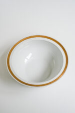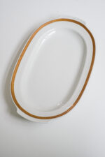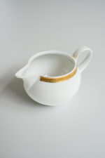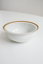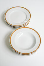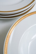 Jídelní sada pro 4 osoby jednoduchého a praktického tvaru. Zdobena je zlatým pruhem s decentím geometrickým vzorem, který ji posouvá do kategorie elegance.