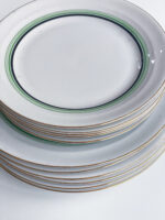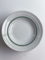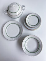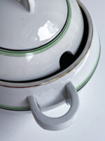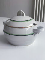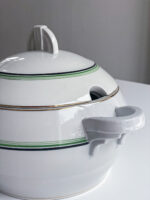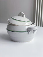 Neobvykle barevná jídelná sada ve stylu art deco vhodná na sváteční stůl i na venkov na nedělní oběd. Polévková mísa má nádherně tvarovaná ucha a úchyt, která jasně odkazují na art deco styl.