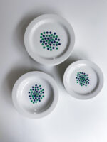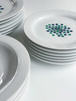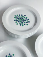 Jídelní sada od německé porcelánky Thomas spadající do skupiny Rosenthal. Jak už u této značky bývá porcelán působí moderním a minimalistickým dojmem. Kombinace zelené a tmavěmodré barvy je vždy velmi efektní. I zde vzor připomínající vesmírny třesk v těchto barvách velmi zaujme.