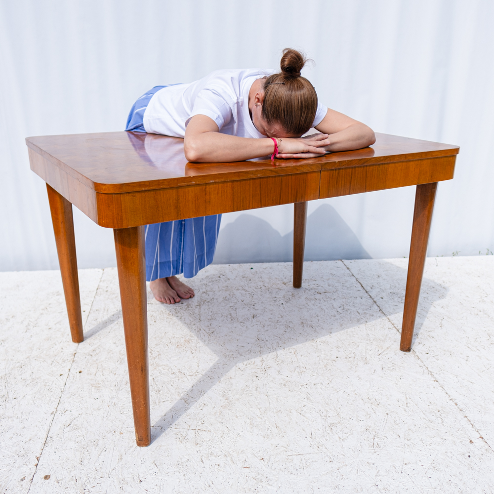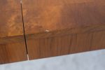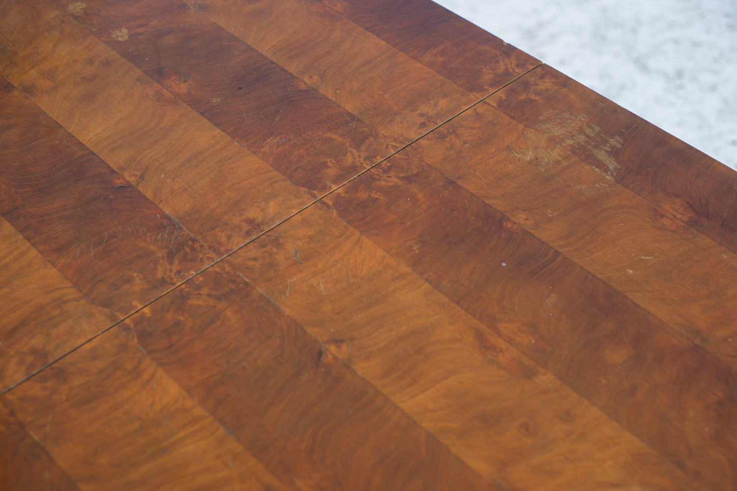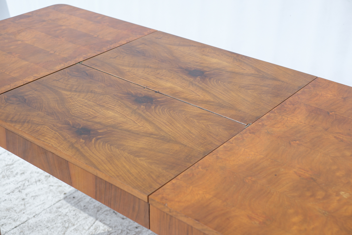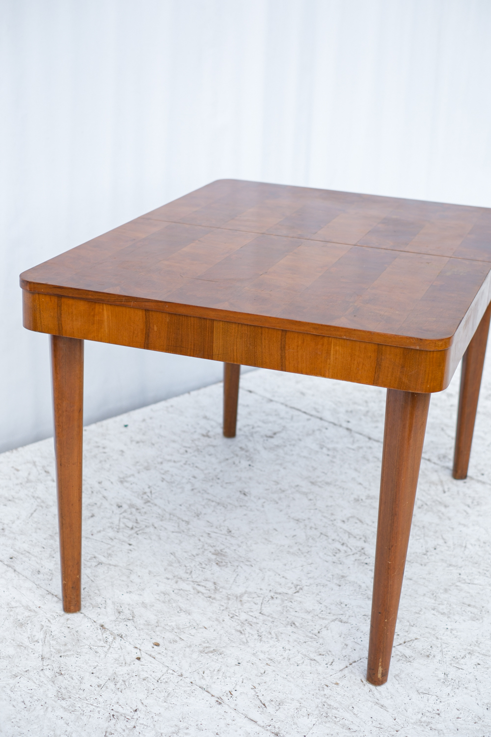 Rozkládací jídelni stůl od Jindřicha Halabaly vhodný pro 4 až 6 osob s krásnou kresbou dřeva.