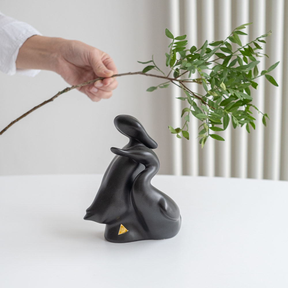 Soška dvou kachen podle návrhu Jiřího Černocha pro porcelánku Royal Dux, pro kterou pracoval v 50. letech minulého století externě a od roku 1968 byl zaměstnán jako návrhář. Navrhoval především figury zvířat, kdy vycházel z přírody. Kromě zvířecích motivů navrhoval také ženské figury a sportovce – u těch bylo pro autora důležité zachytit věrně pohyb.