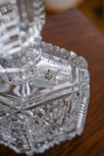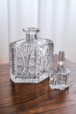 Starožitná broušená karafa na likér s broušenou zátkou.