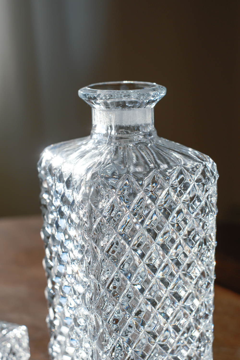 Litá karafa na whisky. Špunt je zabroušený. Karafy nyní přicházejí opět do módy a jsou žádaným zbožím. Pokud si lámete hlavu nad tím, jaký dárek zvolit pro muže, tohle by mohla být dobrá volba.