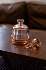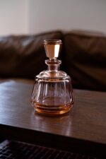 Rozalínová karafa ve stylu art deco s broušeným hrdlem. Vhodná na dámský likér nebo jen tak na dekoraci mezi skleničky.