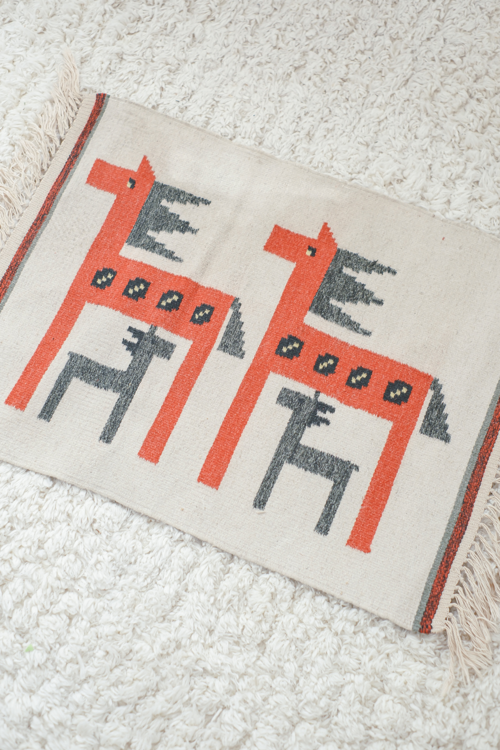 Malý koberec s motivem lamy.