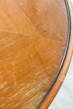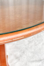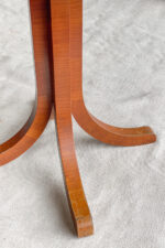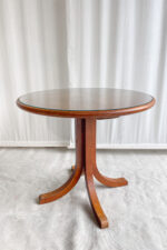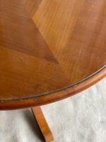 Subtilní konferenční stolek vhodný na velkou solitérní vázu či sochu, případně na kávu s kamarádkou. Stolek je velmi jednoduchý tvar, ale vyzařuje z něj hostorie. Dřevěná deska je chráněna sklem.