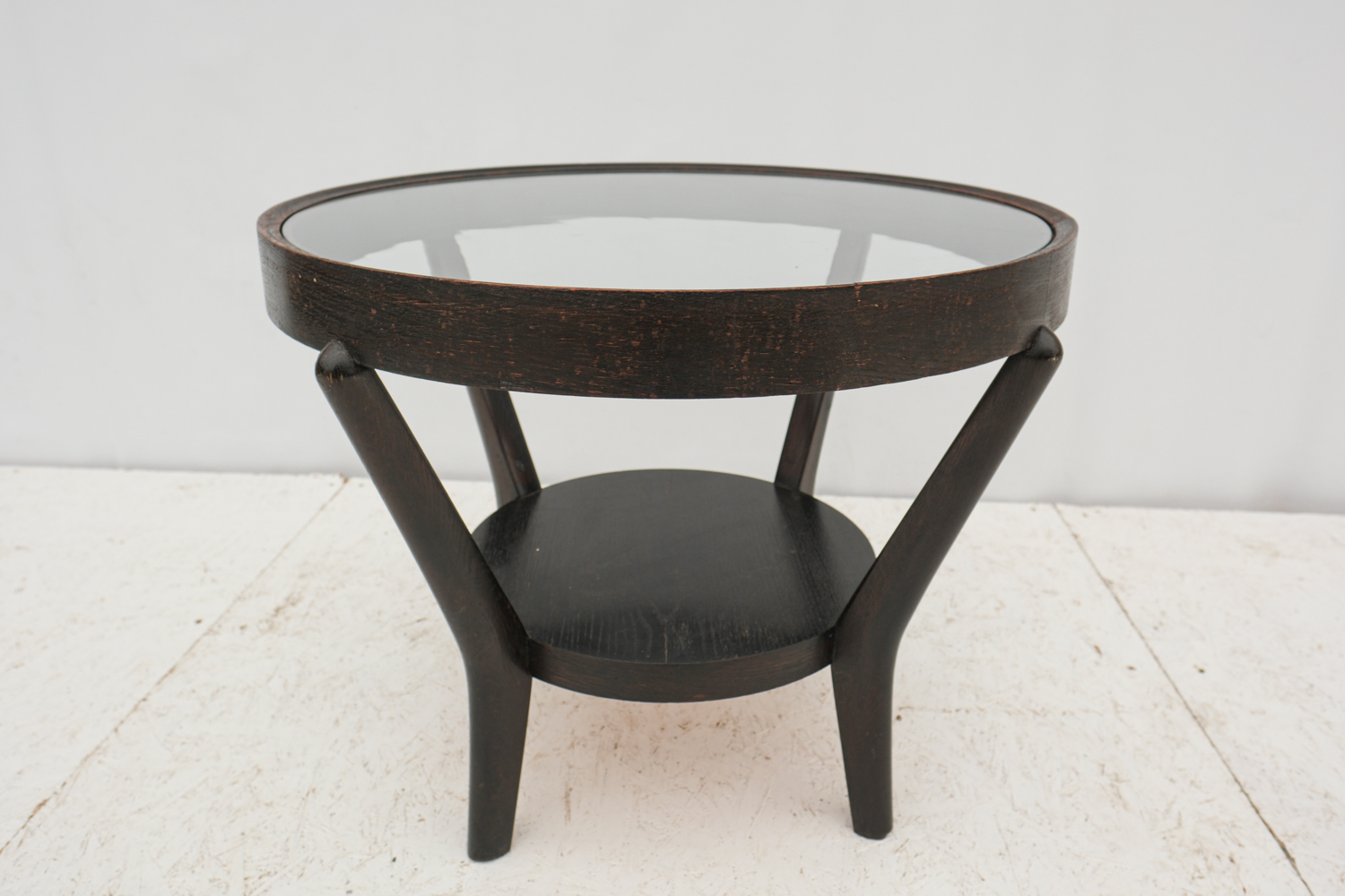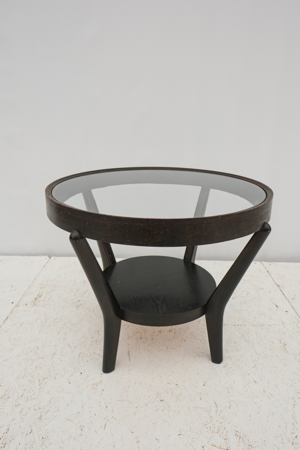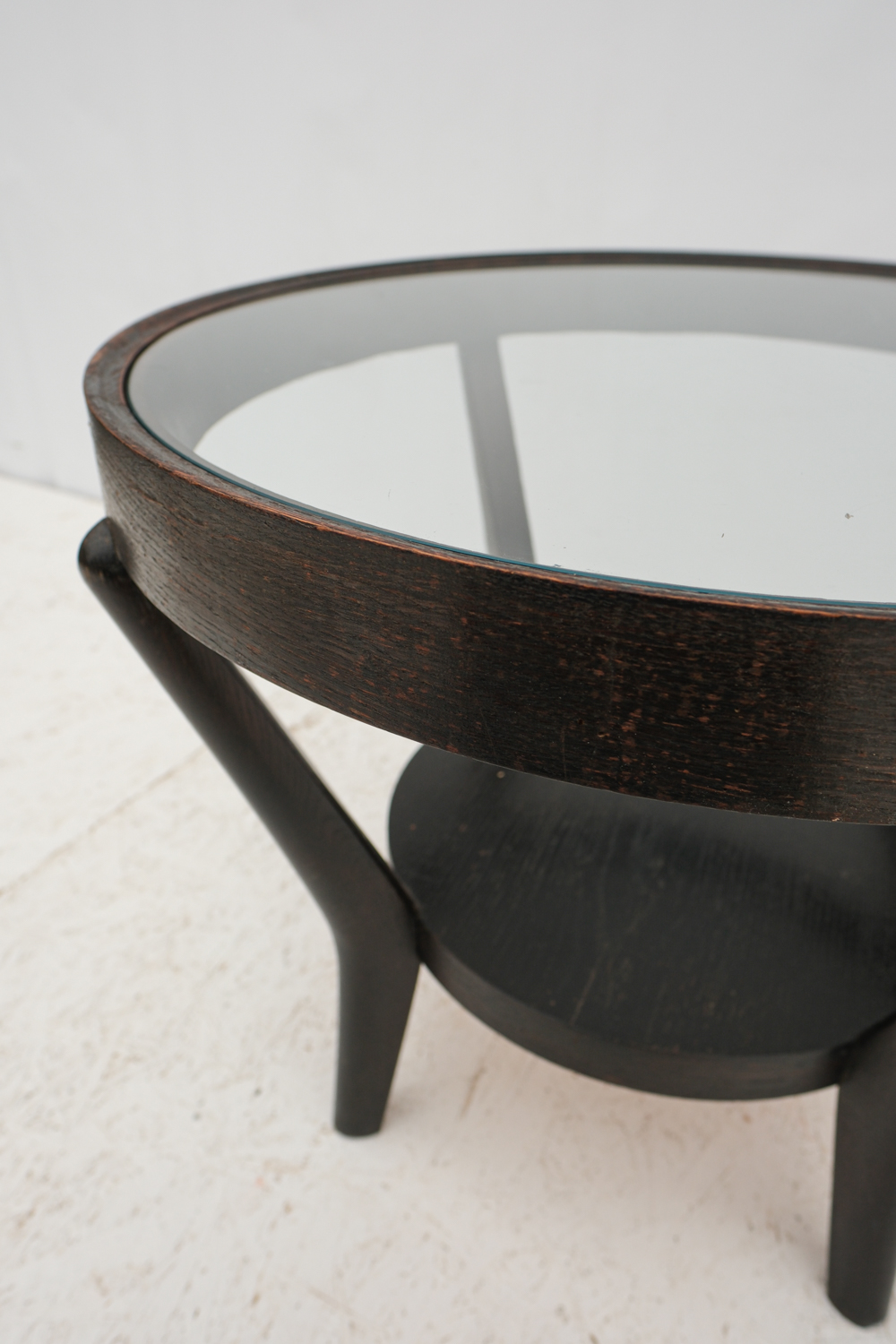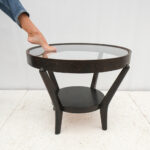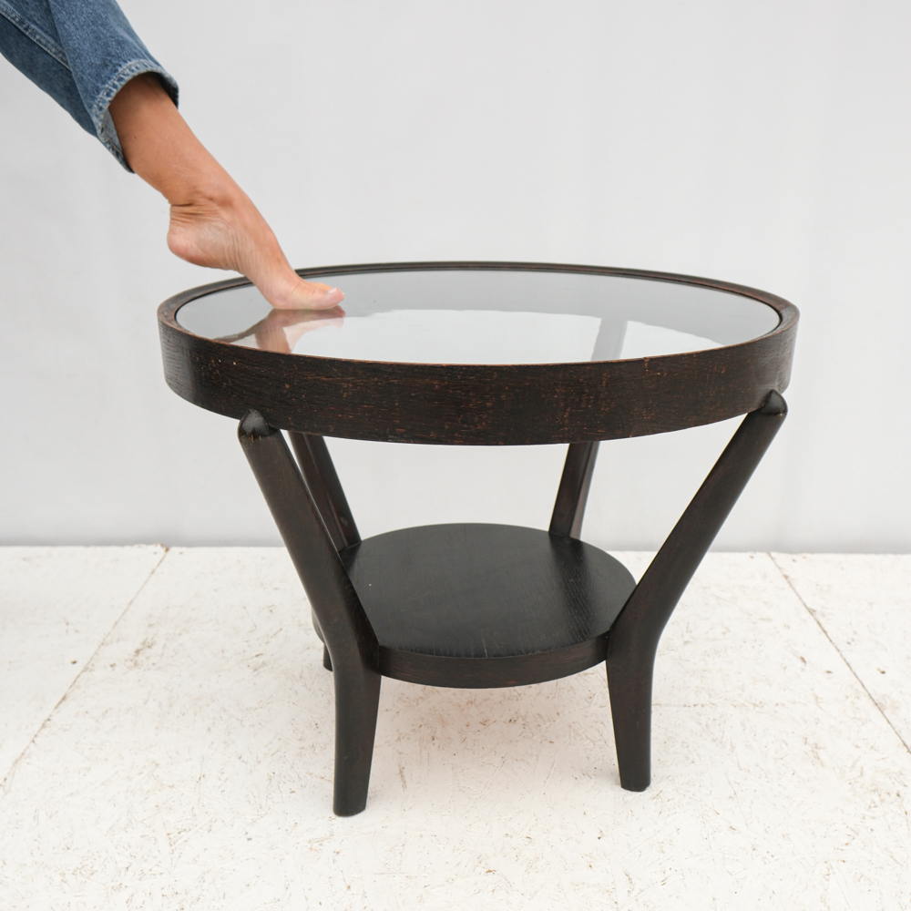 Konferenční stolek ze 40. let byl navržen Karlem Koželkou a Antonínem Kropáčkem a patří do souboru nábytku, který získal v roce 1946 stříbrnou medaili na milánském Trienále, nejstarší a nejprestižnější mezinárodní přehlídce designu a architektury.