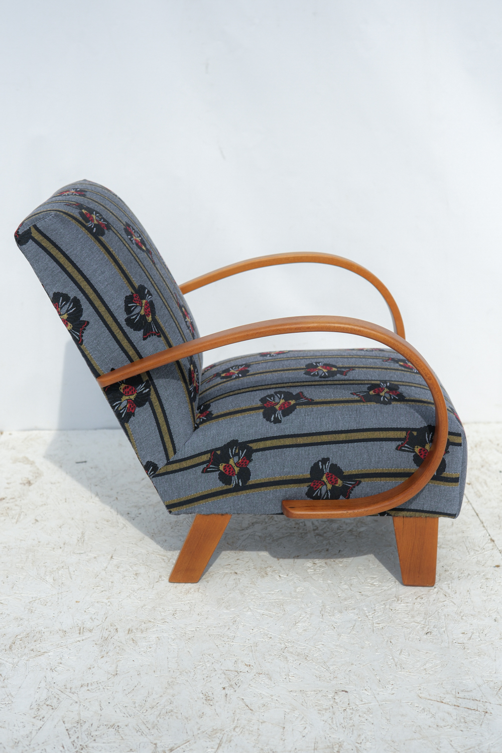 Křeslo typu „C“ od Jindřicha Halabaly, charakteristické svými plynule ohýbanými područkami, které tvoří jeden elegantní oblouk a dávají křeslu jeho nezaměnitelnou siluetu. Ikonický model, který patří k nejvýraznějším symbolům českého modernistického nábytku.