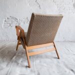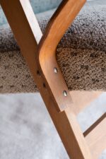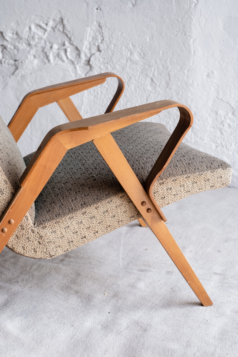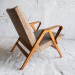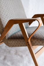 Již poměrně vzácné dřevěné křeslo z šedesátých let od československé nábytkářské firmy Tatra Pravenec, která existovala mezi lety 1958 a 1990. Zabýval se sériovou výrobou nábytku, zejména sedacího z ohýbaného dřeva. Jednalo se o levnější variantu k prvorepublikovému Thonetu. Křeslo je ve velmi zachovalém původním stavu. Má krásně řešené područky z ohýbané překližky a celkově styl elegantního dánského designu.