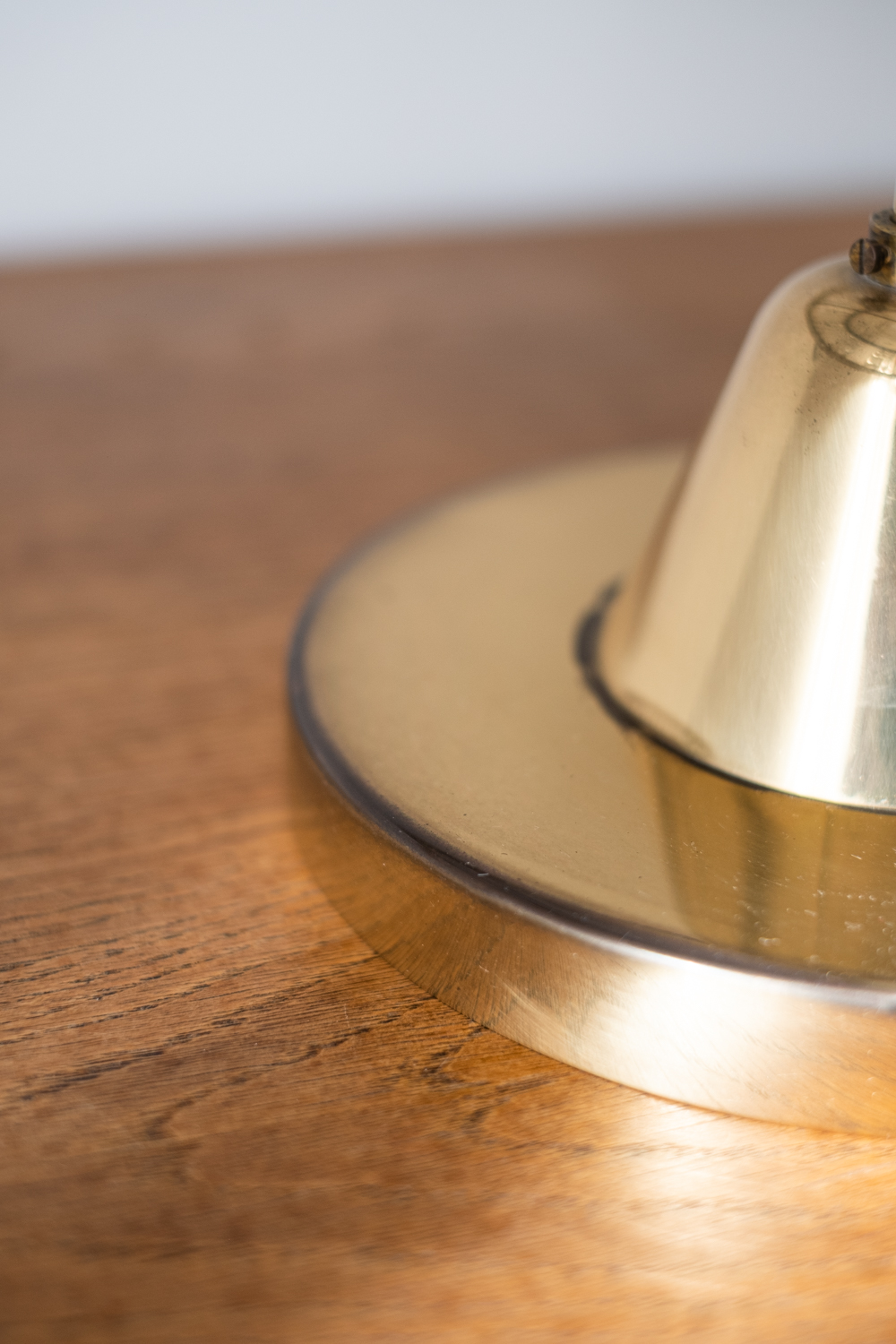 Stav: funkční, elektroinstalace původní. Mosaz nese známky patiny, horní plastový kryt je uprostřed prasklý (viz foto)