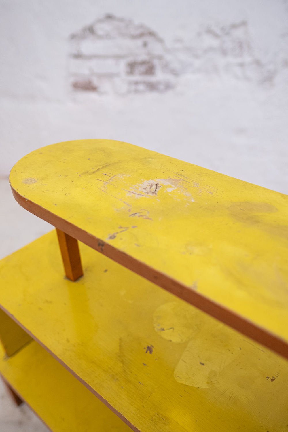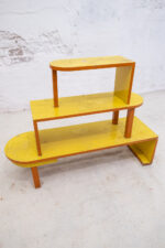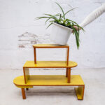 Třípatrový květinový stolek z období bruselské éry. Žlutá barva bude v krásném kontrastu zelených rostlin.