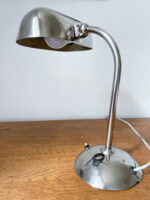 Stolní lampička tzv. bankéřská z 30. let minulého století, která nechyběla na žádném stole tehdejšího úředníka. V neobvyklém celochromovém provedení.