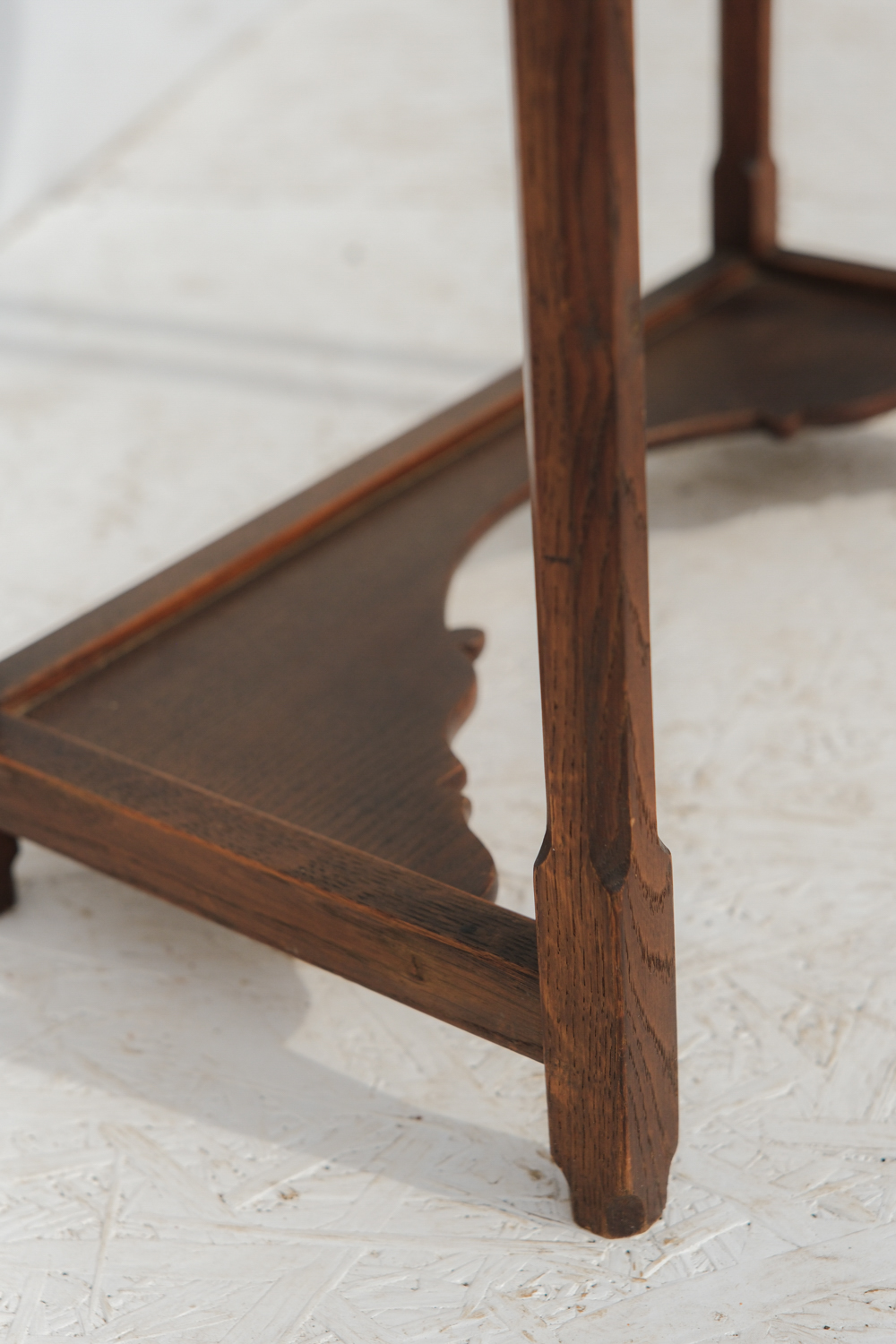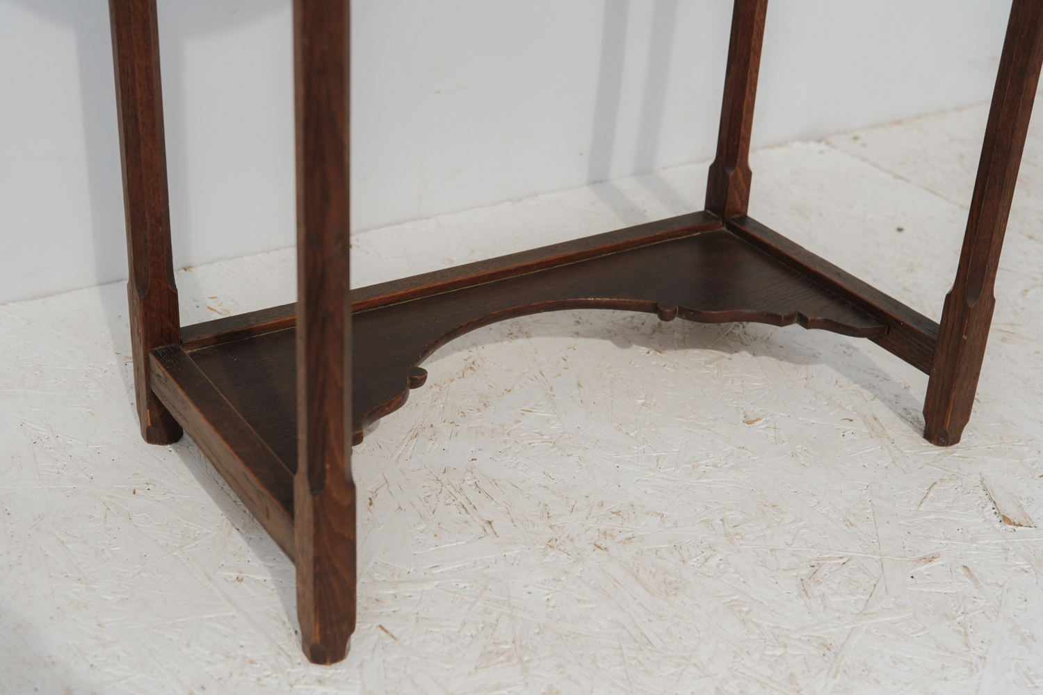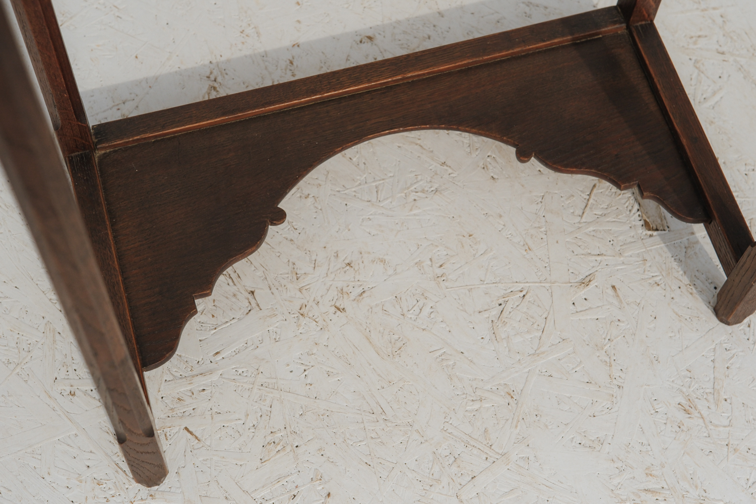 Subtilní konstrukce doplňuje spodní deska s jemně vykrajovaným profilem, která přináší dekorativní detail, aniž by působila těžce. Skleněná deska pak celek odlehčuje a nechává vyniknout samotnou formu.