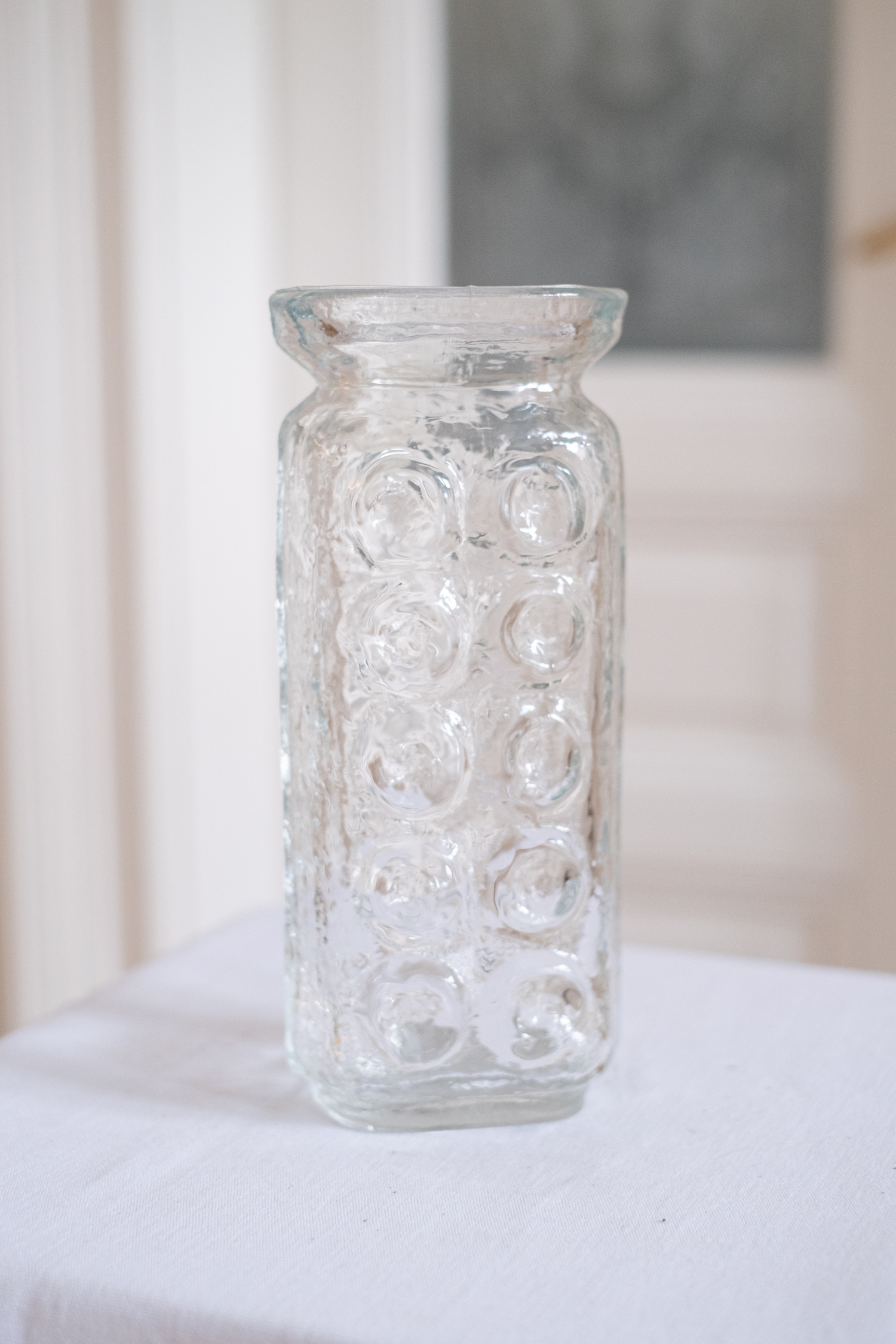 Autorská váza od Pavla Pánka je vyrobena z čirého lisovaného skla ve sklárně v Rosicích, 1973. Jedná se o vzor 2301. Váza potěší sběratele nebo milovníky 70. let.
