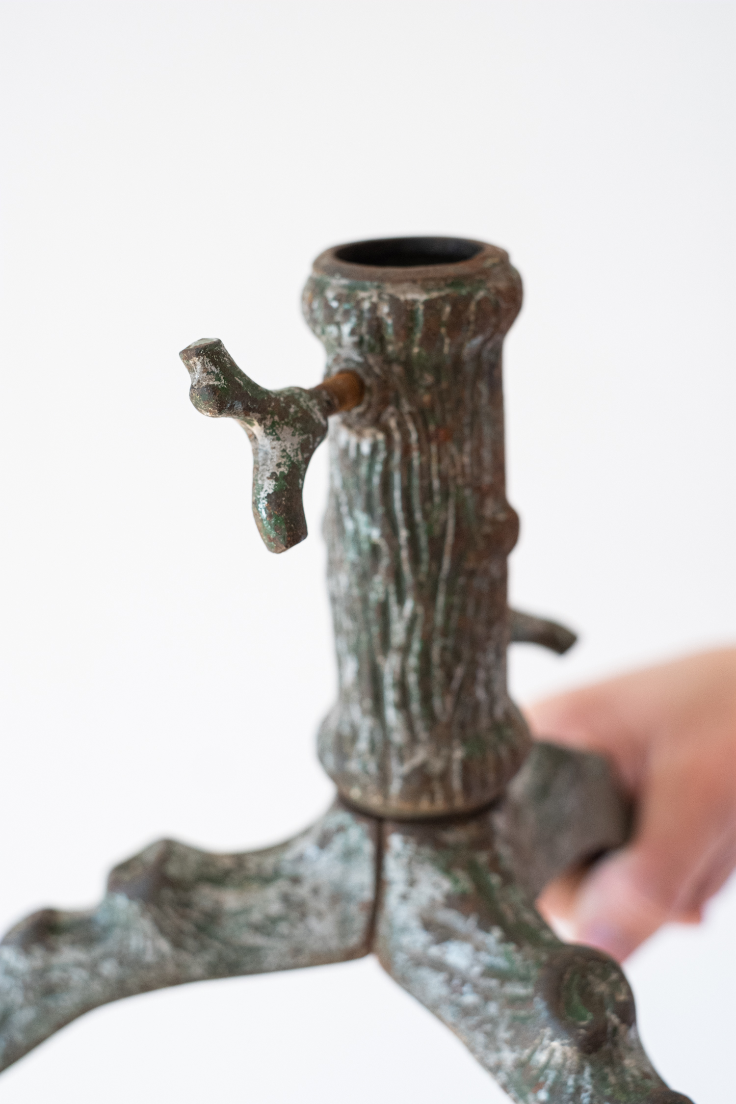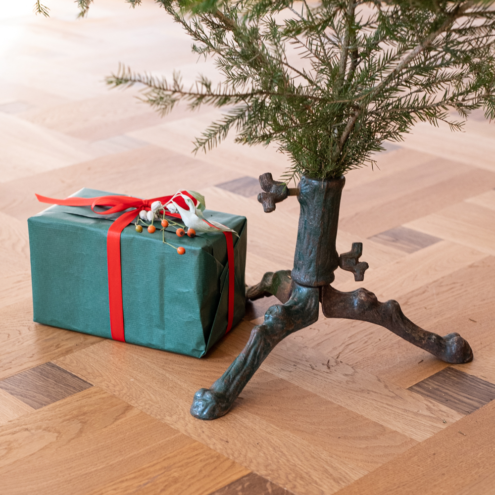 Starožitný litinový stojan na vánoční stromeček byl před válkou snad v každé domácnosti. Možná jste ho na půdě u bybičky objevili také a pokud ne a toužíte po něm, tak jej máme v několika veliksotech. Skládá se ze 4 dílů (je rozkládací) a dvou šroubů pro uchycení stromečku.