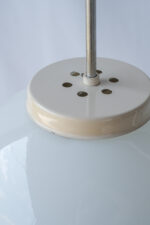 Stínidlo z opálového skla v jednoduchém tvaru. Lustr se svým vzhledem a velikostí hodí zejména do chodby nebo nad jídelní stůl.
