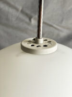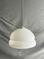 Lustr z opálového skla v zajímavém neobvyklém tvaru, který připomíná kloubouk hřibu se zdvojeným lemem.